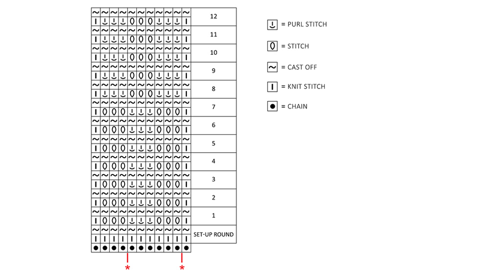 Row 13: keep repeating from the row 1 until you get the desired length.