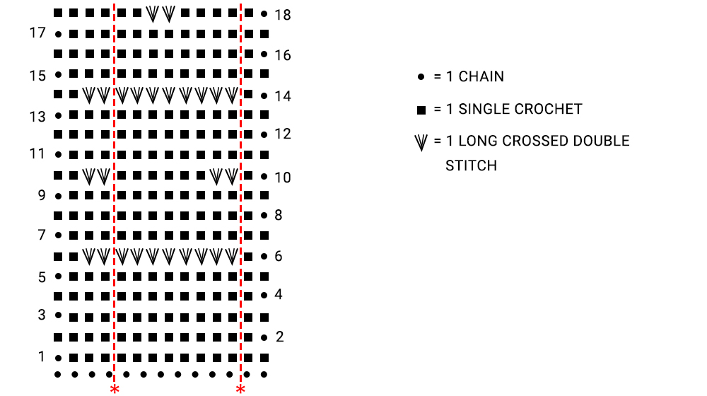 From row 15 to 17: chain 1, single crochet 1 on each stitch of the previous row.