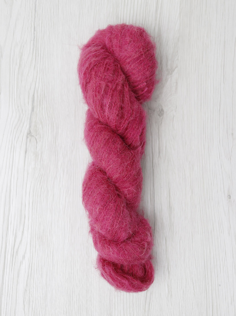 All this beauty is made possible by Cumbria, an alpaca yarn spun with three plies: two ultra-thin strands form the core, while a third, super-fine and fluffy strand adds volume, creating a texture as airy as cotton candy. The finished fabric will have a wonderfully irregular texture.