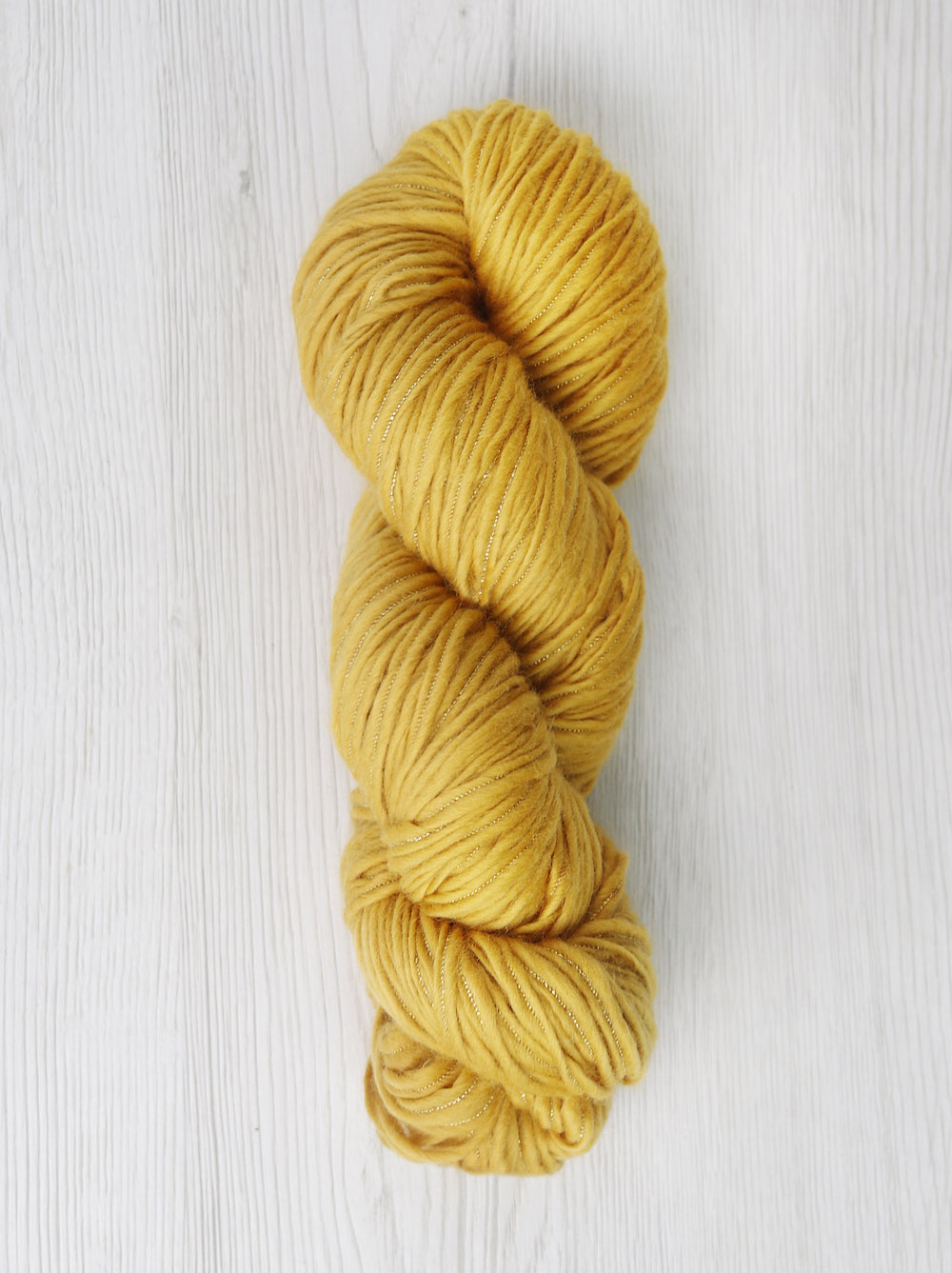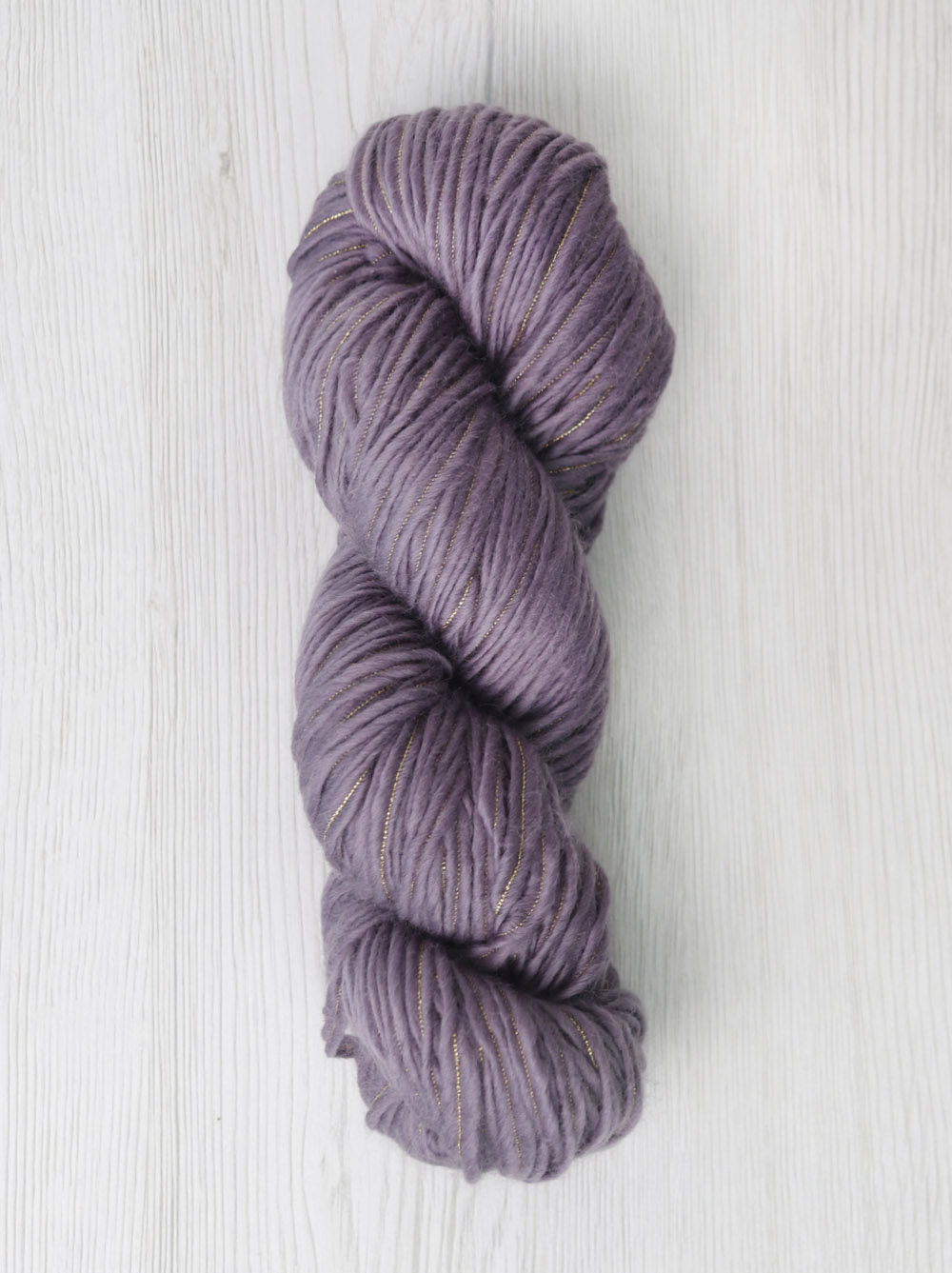 The result is a soft, wide ribbon-like yarn that’s warm and light, with a subtle metallic shimmer that beautifully contrasts with the wool’s natural fluffiness — creating a look that’s both simple and luxurious.