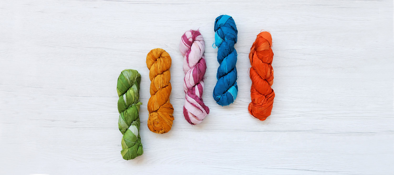 Discover our collection of sari silk ribbons. They are perfect for knitting, hand weaving, textile jewellery, and so much more.