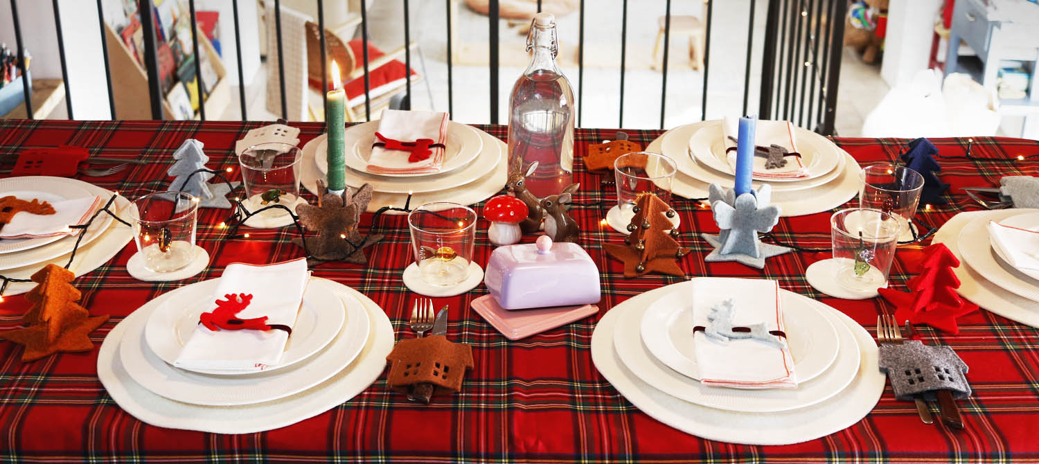 That’s why we’re sharing our holiday table idea featuring felt, designed for us by @chiawok, who is always a fountain of creativity. Our felt decorations are scattered across a tablecloth with a classic tartan pattern: round latte-colored placemats and coasters, 3D angel-shaped candle holders, cheerful red reindeer as napkin rings, delightful little houses to hold cutlery, Christmas trees covered in tiny bells, and stars floating down from the chandelier. Everything is meant to evoke that classic mountain chalet holiday atmosphere.