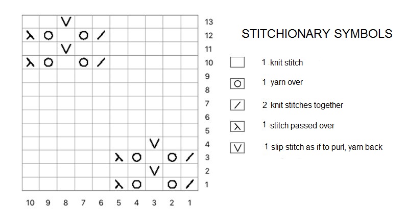 from round 63 to round 75: knit 2 follow the chart from line 1 to line 13 (to be repeated 4 times horizontally) finish the round with 2 knit stitches