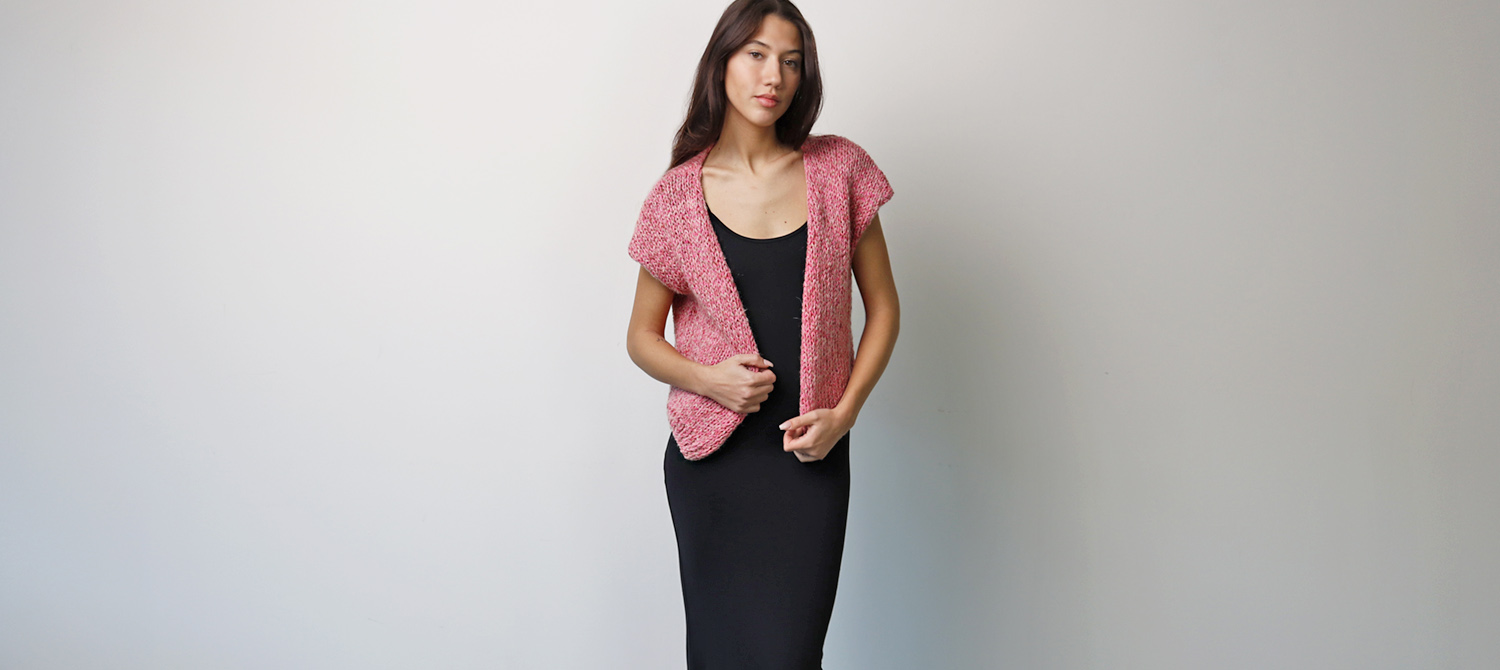 Metti sù un bel circolo di amiche e amici, fai trovare pronti dolcetti e un buon tè e poi divertitevi insieme per sferruzzare questo cardigan ai ferri senza maniche unisex! Realizzato con il filato screziato Vivienne, formato da due capi di mohair e 2 capi di cotone sottilissimo stampato che lo rende un DK/Light Worsted in cui la pelosità del mohair spicca rispetto al cotone, è essenziale nella linea ma eye catching nel colore!