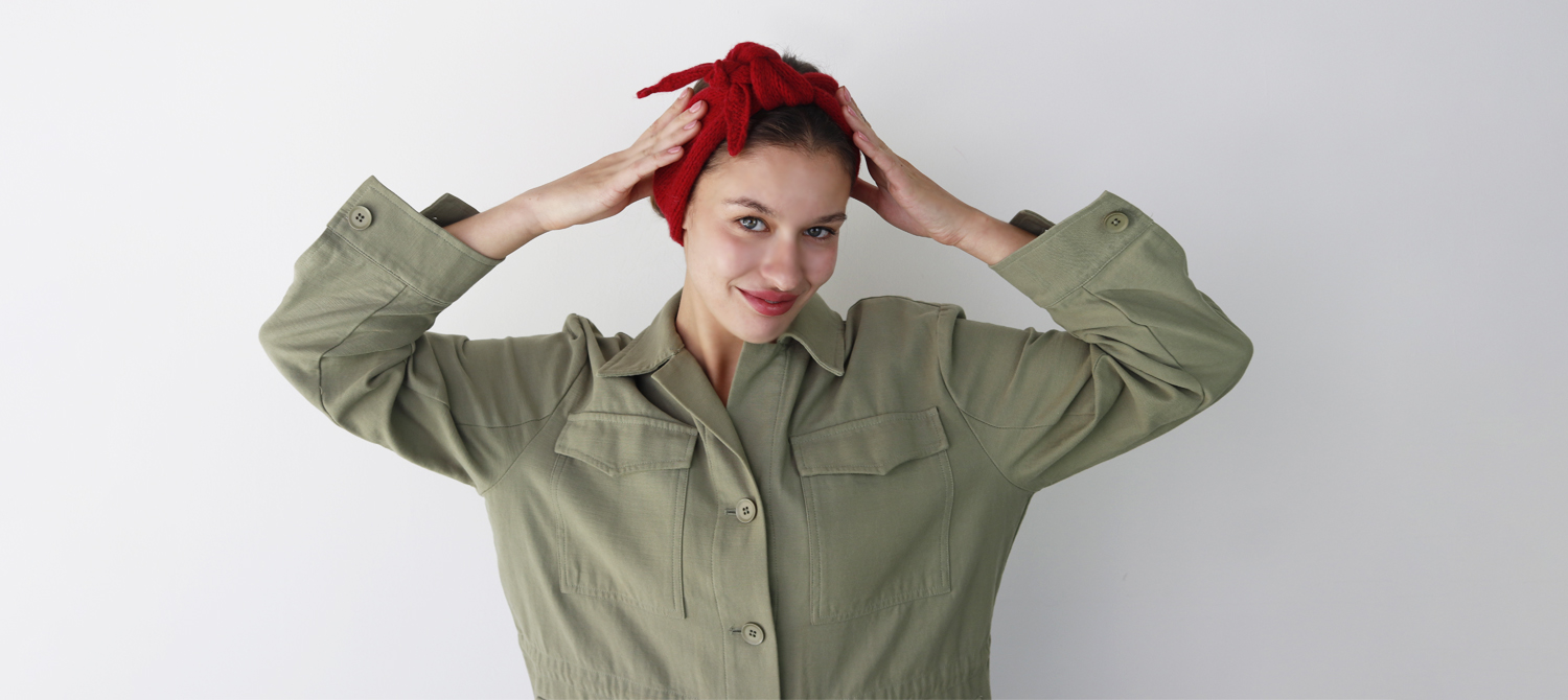 Vedi come la bandana indossata insieme a una sahariana verde fa brillare tutto di una luce più intensa? Divertiti a indossarla come più ti gira ma prima però devi realizzarla!