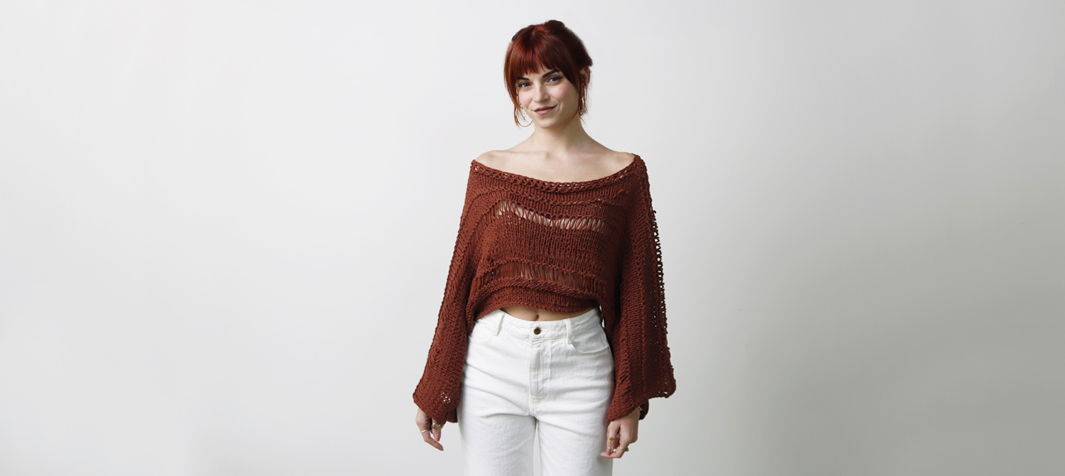 Scenografica, sbarazzina, con volumi over e crop. Questa è la maglia che imparerai a fare oggi con il pattern proposto qui. Un capo che si basa sulle maglie allungate e che, come livello di difficoltà, è facile.