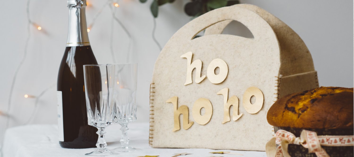 Noi abbiamo scelto di personalizzare il porta panettone in feltro con una delle scritte più tradizionali, ovvero l'ormai mitico "ho ho ho" di Babbo Natale. Ma ci sono altre mille scritte carine con cui decorarlo, magari anche il nome del destinatario del panettone.
