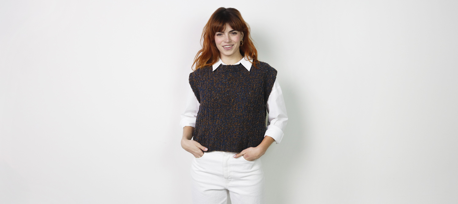 Жилет одна из тех вещей, которые всегда придают образу характер, а вариантов их настолько много, что подобрать идеальный для конкретного тандема совсем несложно. Сегодня ты вместе с нами научишься вязать спицами жилет с меланжевым эффектом, который можно носить даже с простой белой рубашкой и джинсами, получая в итоге очень изысканный, хоть и на первый взгляд простой наряд. Такой результат достигается благодаря пряже Hygge буклированной пряже из альпаки и тенсела, напоминающей каракулевый мех, и приёму сочетания двух оттенков Hygge для создания эффекта «соль и перец», похожего на меланжевые ткани. Так даже самый обычный жилет, связанный лицевой гладью, превращается во что‑то особенное.