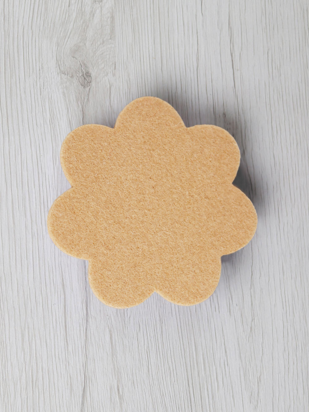 Sottobicchiere a fiore in feltro lana termoformabile. Composizione: 90% lana, 10% poliestere Spessore: 3 mm - 0.12" Misura: 10 cm - 3.9" Ogni confezione contiene 6 pezzi.