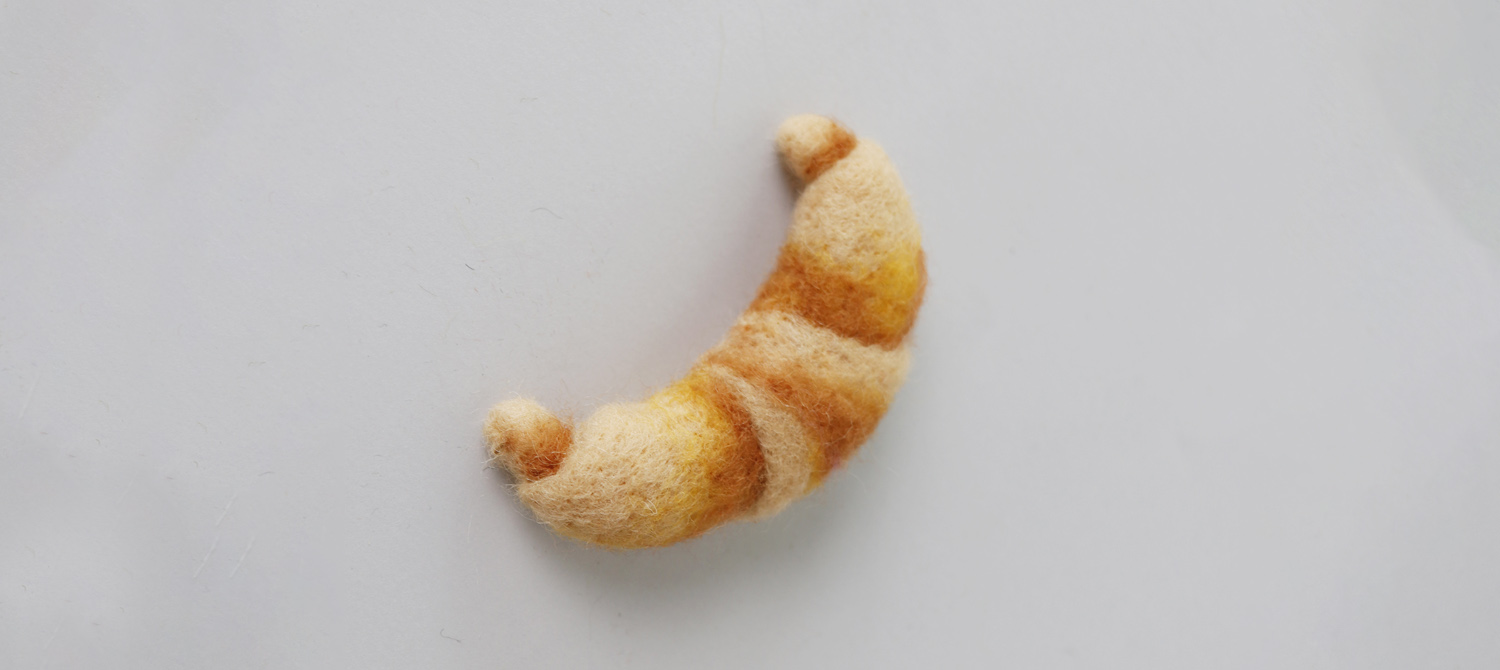 Riprendete l’ago e iniziate ad infeltrire la forma ottenuta. Partendo da un’estremità del croissant e andando piano piano ad infeltrire il dolcetto da forno. In questa fase bisogna porre particolare attenzione alle pieghe. L’obiettivo è amalgamare bene le varie parti del croissant.