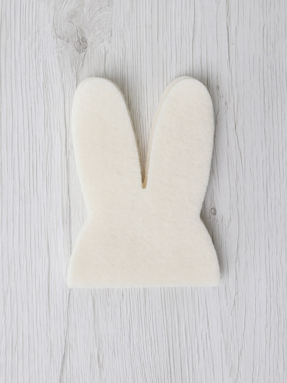 Orecchie da coniglio in feltro lana termoformabile. Composizione: 90% lana, 10% poliestere Spessore: 2 mm - 0.08" Misura: 7.5 x 10.2 cm - 3" x 4" Ogni confezione contiene 4 pezzi.