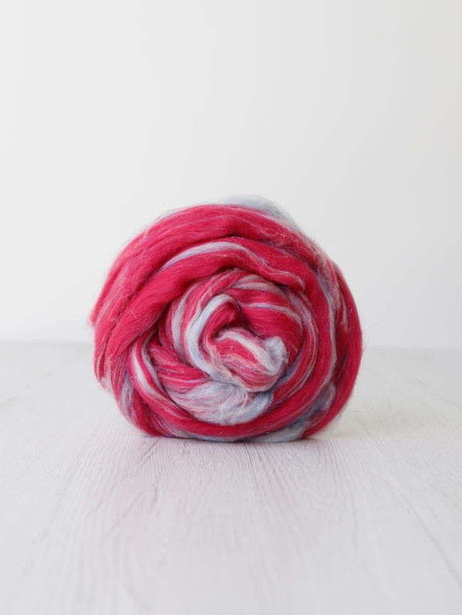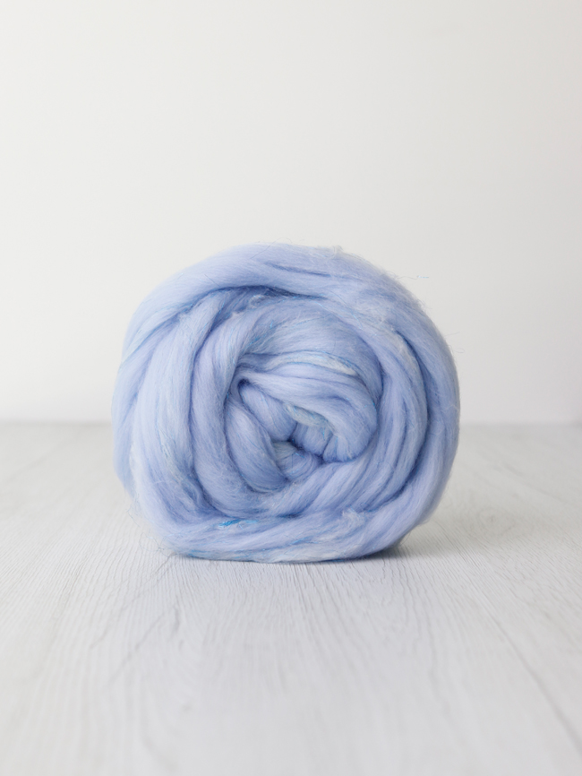 Tops (nastro pettinato) di lana merino extra fine e viscosa. Composizione: 90% lana merino extra fine, 10% viscosa Peso nastro: circa 23 g/m - 0.81 oz/yd Il peso delle confezioni ha una tolleranza fisiologica del +/- 3%; le quantità all´interno di tali confezioni sono inviate in nastro continuo.