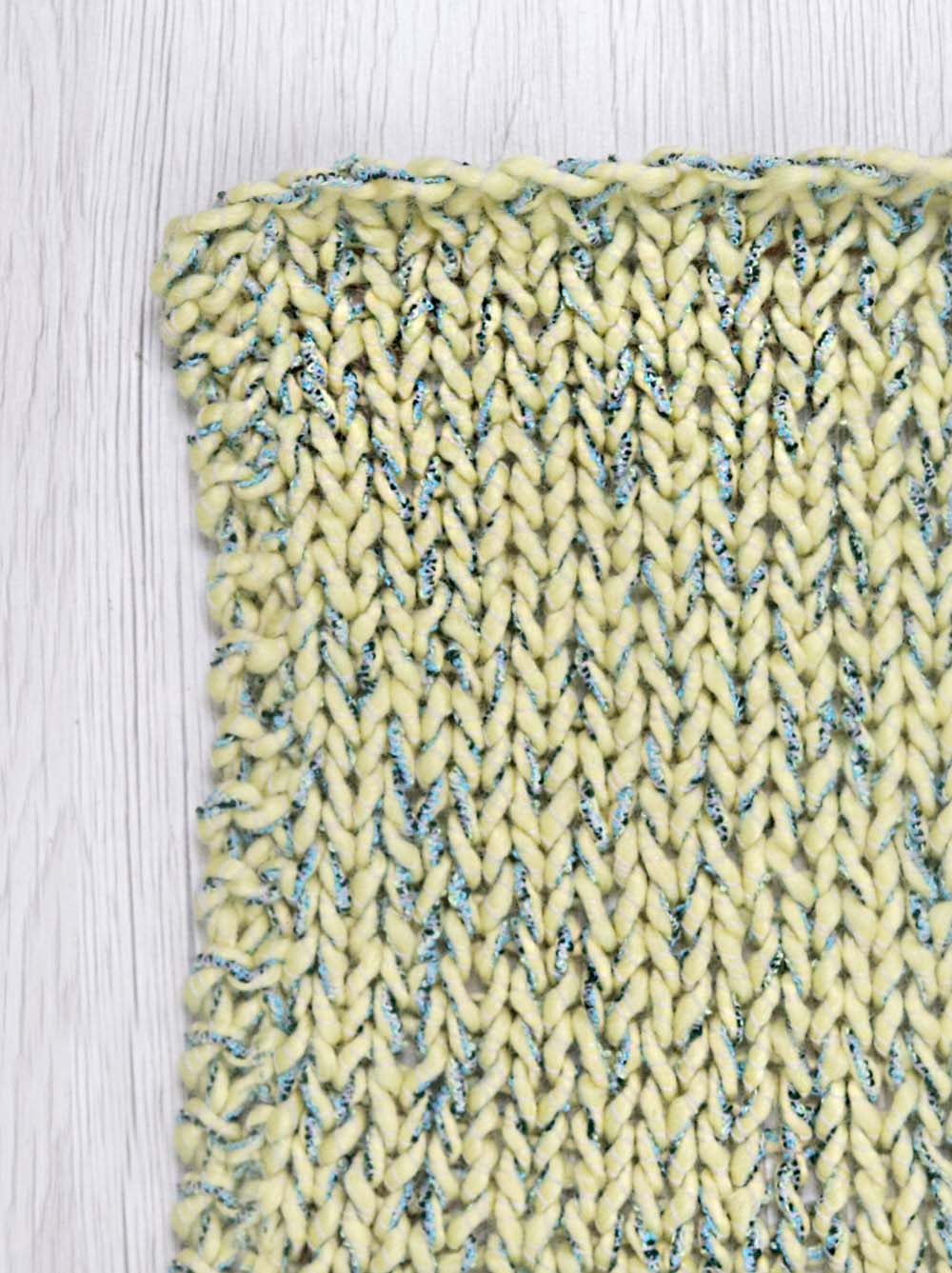 Con i ferri: è molto bello se lavorato a maglia rasata e con altre lavorazioni a ispirazione tessuto.