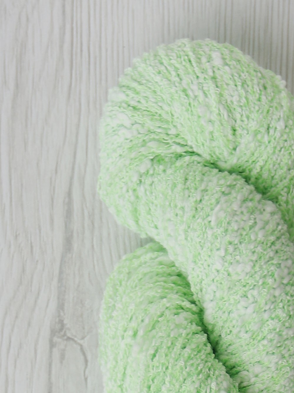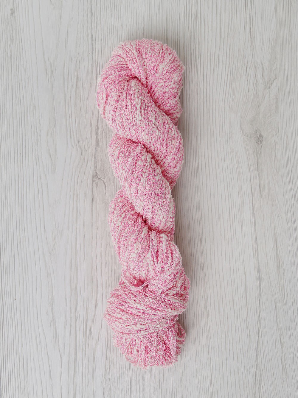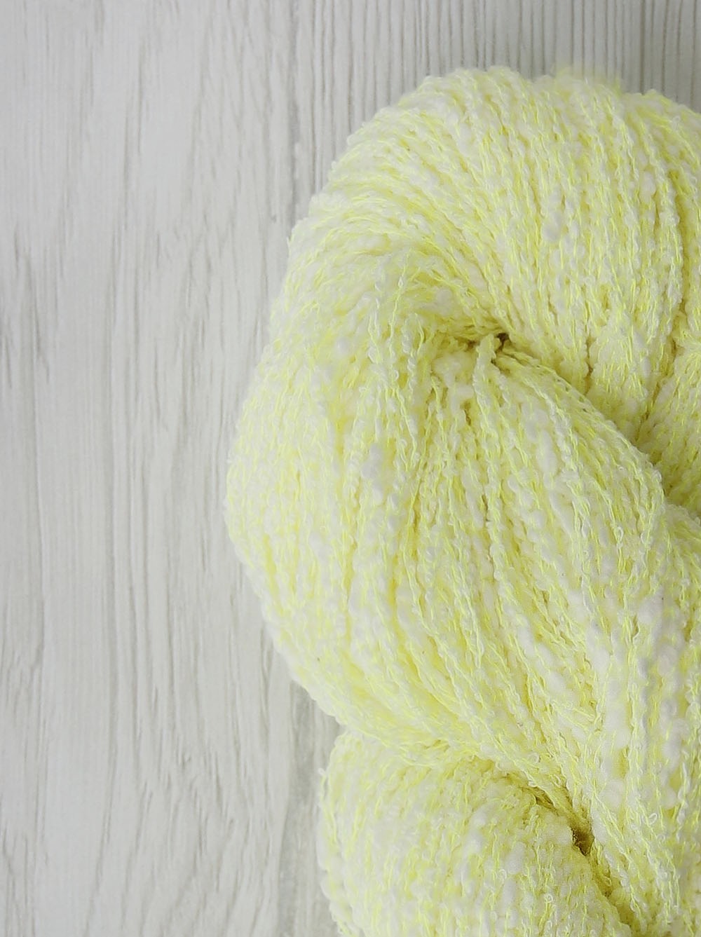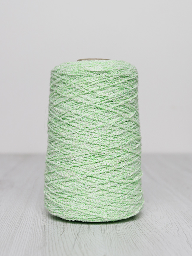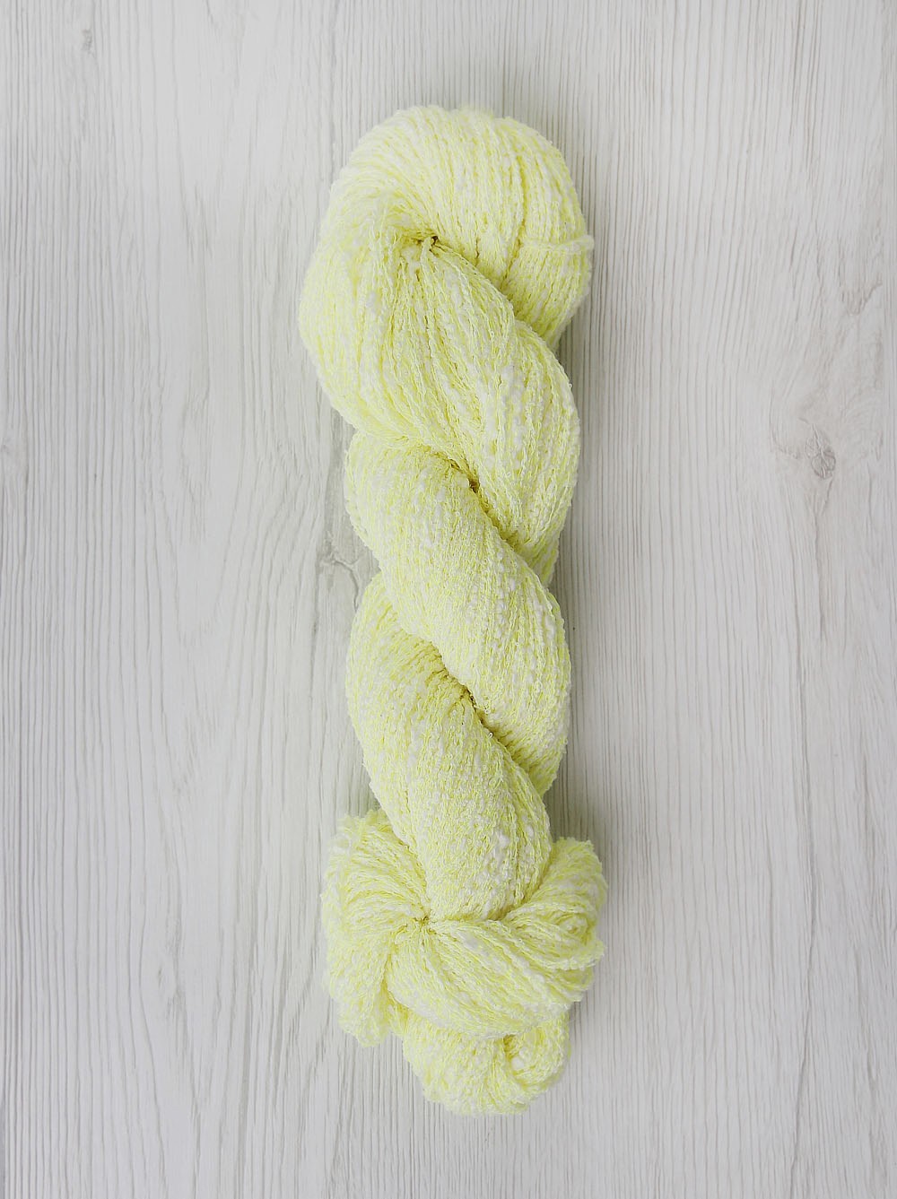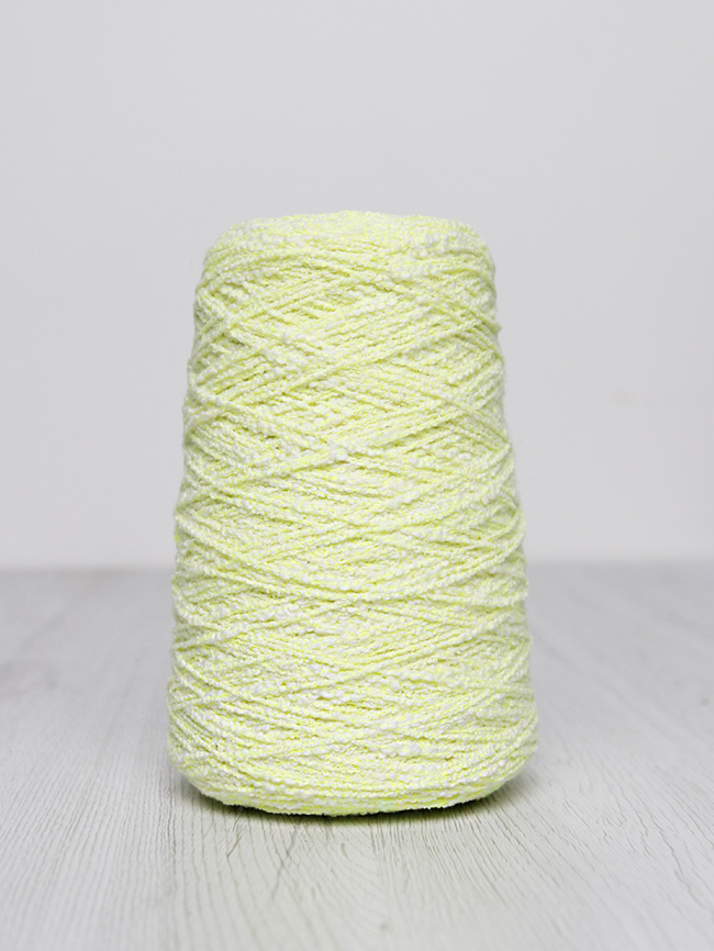 Il risultato è un filato dall’aspetto estivo, morbido e spugnoso, con una superficie disseminata di “nuvole di cotone”, con una certa elasticità e con un grande effetto colore.
