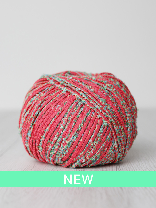 Pop fonda il suo splendore sui colori a contrasto e sui tocchi fluo. In più è adornato da un esile filato bouclé che lo rende deliziosamente mosso e super contemporaneo.