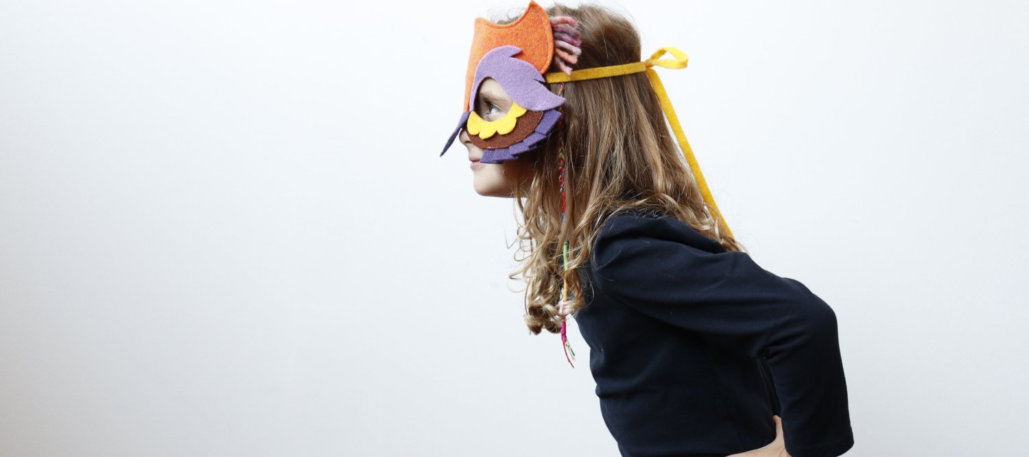 As a matter of fact, our friend Pollaz has designed a mask for us that the little ones of the house and adults too will love! A quite grumpy, nocturnal animal which instantly captures our hearts with its iridescent feathers and kind eyes. We absolutely love it!