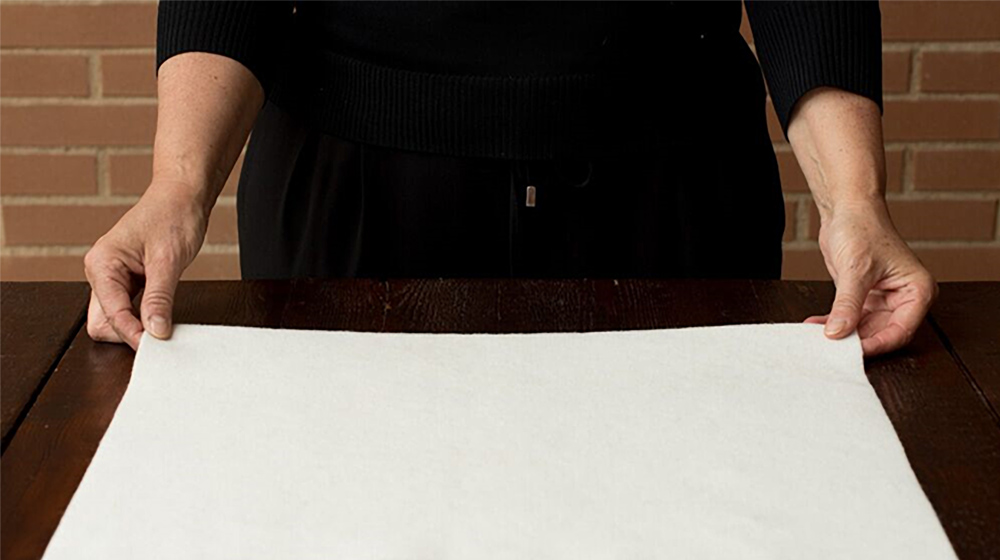 Start by cutting out the felt in the size you want your placemat to have. I chose to make it 35x50cm, but you can choose a different size.