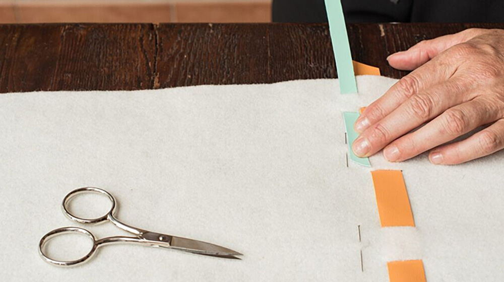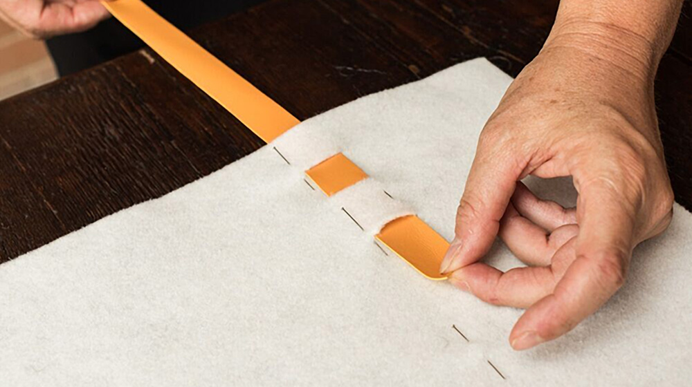Now, cut the felt to make some slits through which you’ll slip the faux leather stripes.