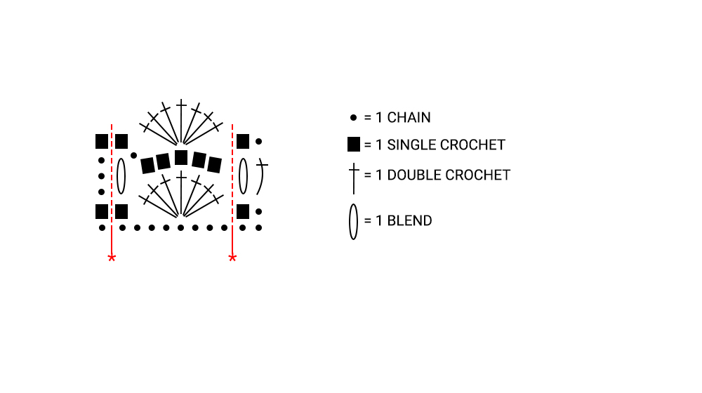 Row 1: chain 1, skip 2 chains starting from the hook, 1 sc in the next chain, *skip 3 chains, 7 double crochets in the next chain, skip 3 chains, 1 sc in the next chain*, always repeat from * to * for the whole row and finish with 1 single crochet in the last chain