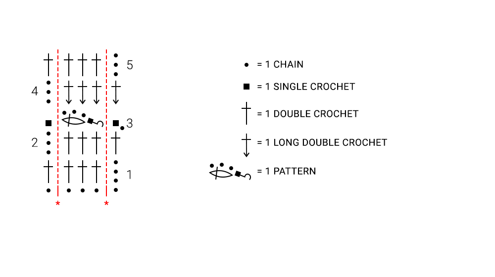 Begin with the part that precedes the first *, repeat from* to * for the entire row and finish with the part that follows the second *.