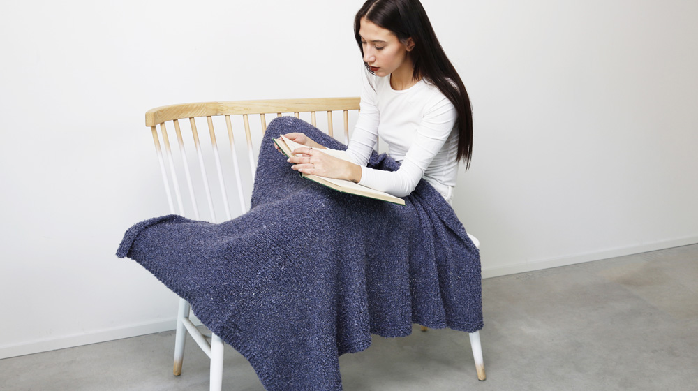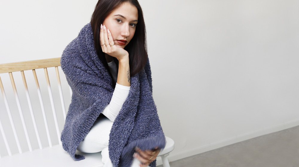 As you can see in the photos, this blanket can also double as a cozy shawl. Now all that's left is to pick your favorite shade of Hygge and start knitting!