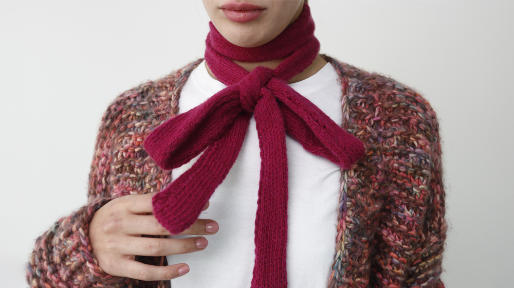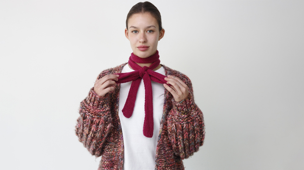 The knitting accessory we’ll learn to make today is very fun because it can be used either as a bow for the neck or as a belt. Super easy to make, it will give a boost to your outfits. Its length allows for a very wide and really dramatic bow.