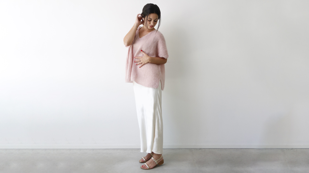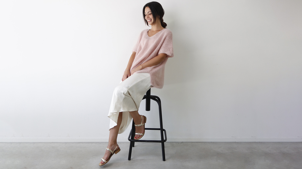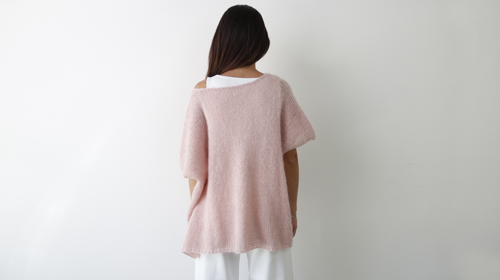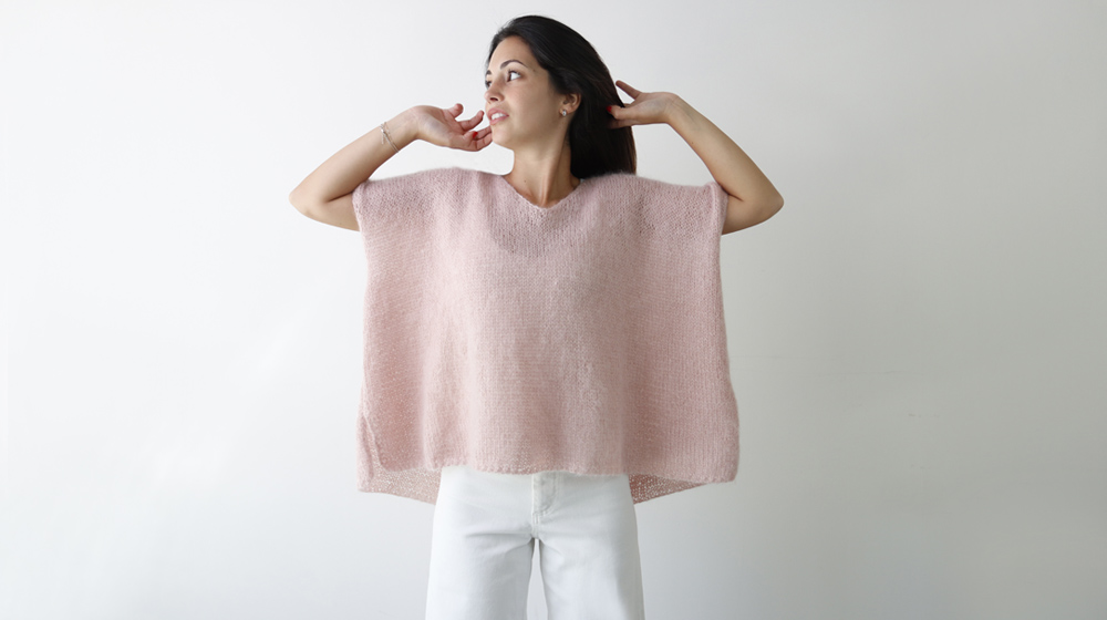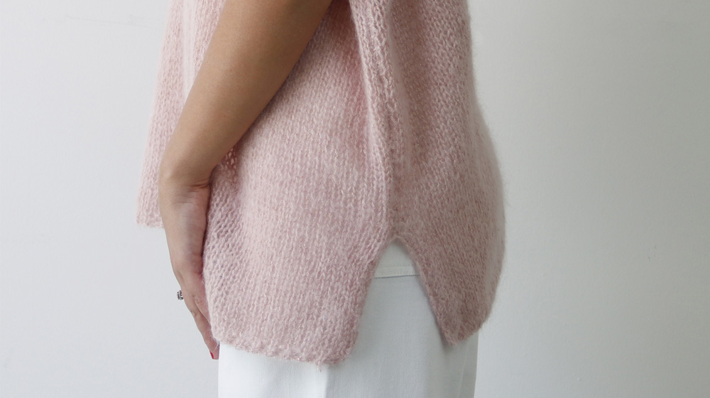 The boxy sweater we’re making here is oversized and, thanks to Fluffy Lamé, beautifully fluid—it doesn’t sit stiffly but instead creates elegant waves that move with the body.