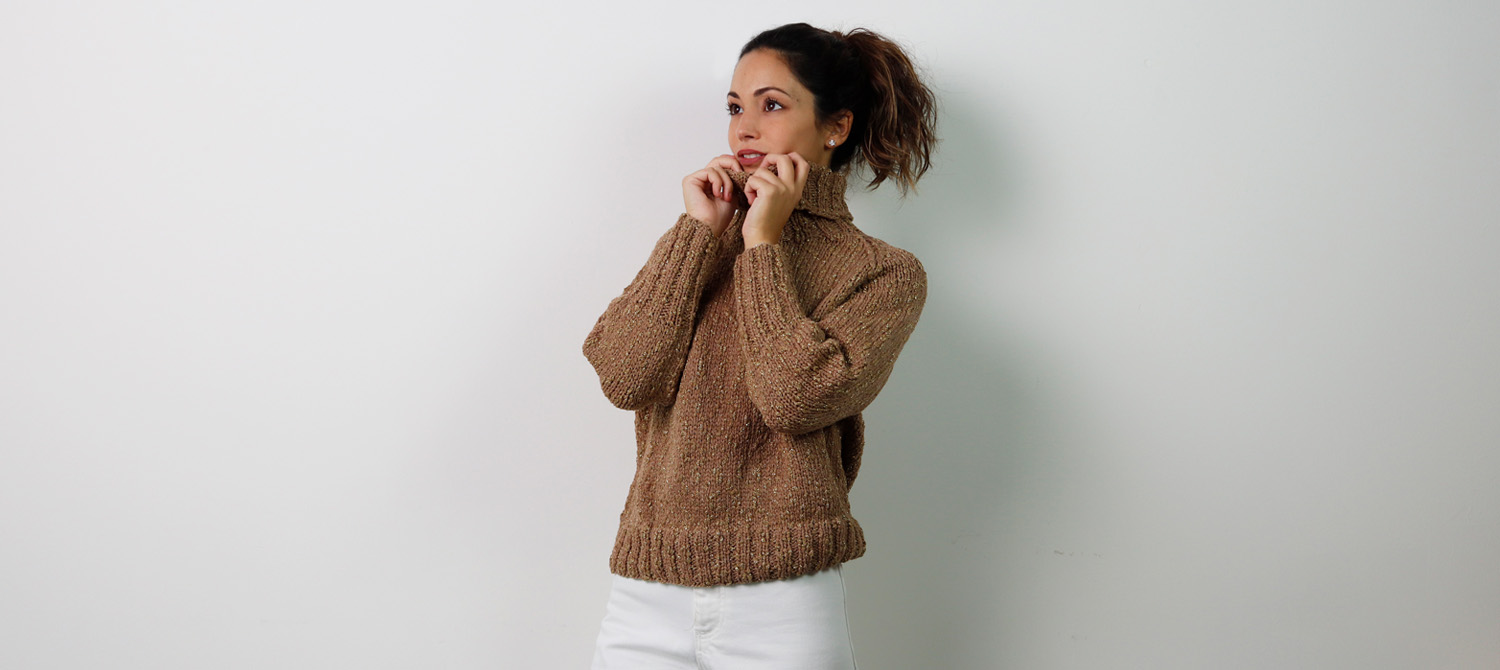 If you’re on the hunt for a cozy high-neck sweater with a simple design but a touch of sparkle here and there, you’re in the right place. Today, we’re sharing a pattern to create just that kind of sweater. We think it’s perfect for wearing during the upcoming Christmas holidays, or simply as a standout piece for any day when you feel like being the center of attention—because with this sweater, you’ll definitely catch everyone’s eye!