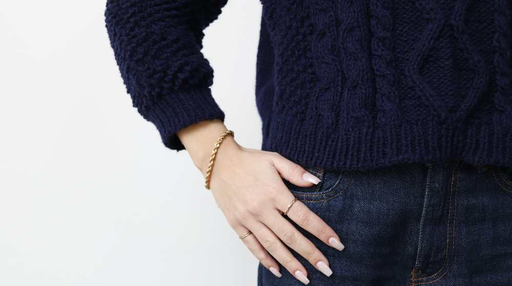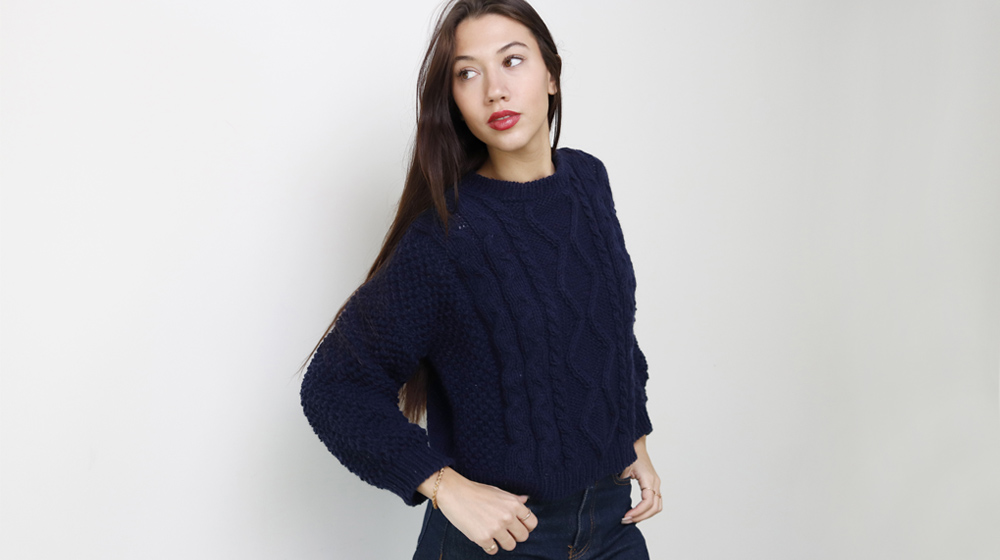 Today we’re introducing a sweater that’s truly special to us. Not only for its classic cable-knit design that nods to British style—though our sweater is super cropped for a modern twist—but also for the yarn it’s made with. It’s crafted with Lagom, a testament to our commitment to supporting the circular economy, as it’s made from regenerated wool sourced from old garments.