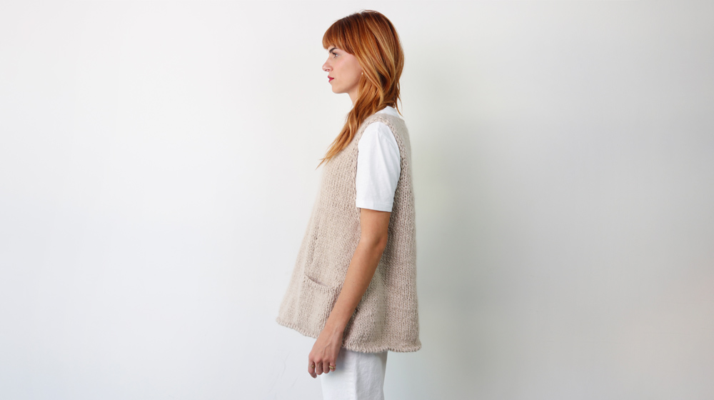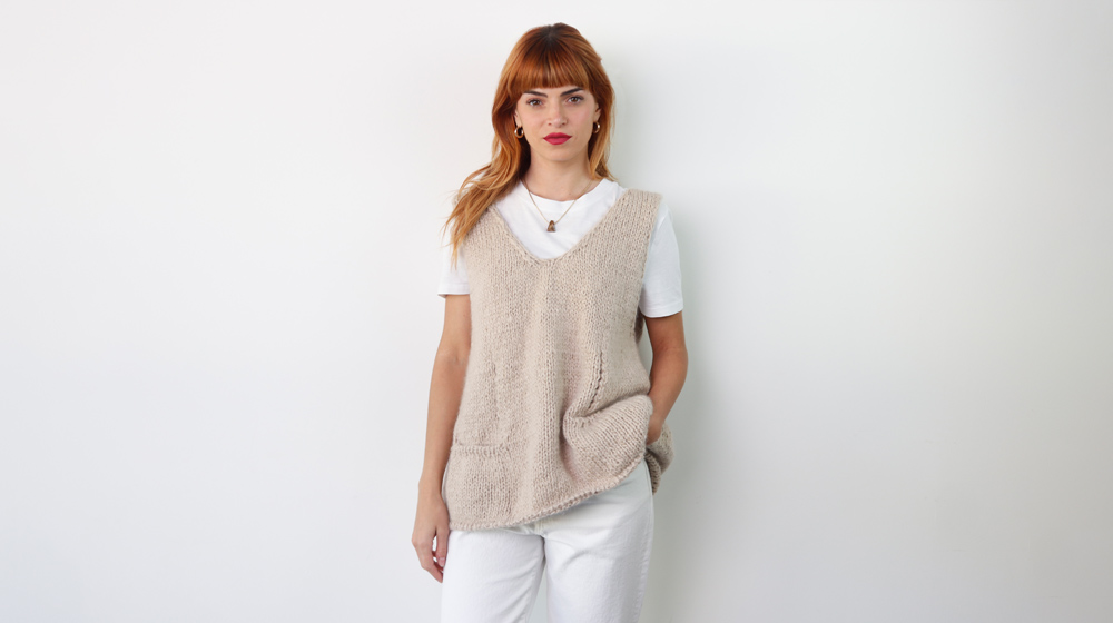 Along with the glow of Luce, this vest stands out for two lively details: a generous V-neckline and handy pockets. Just look how great it looks with a simple T-shirt and a pair of trousers — we’re completely in love with it.