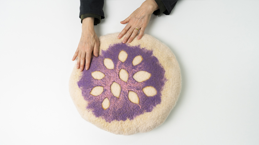 At this point, the double-sided cushion with the wet felting technique is ready to use.