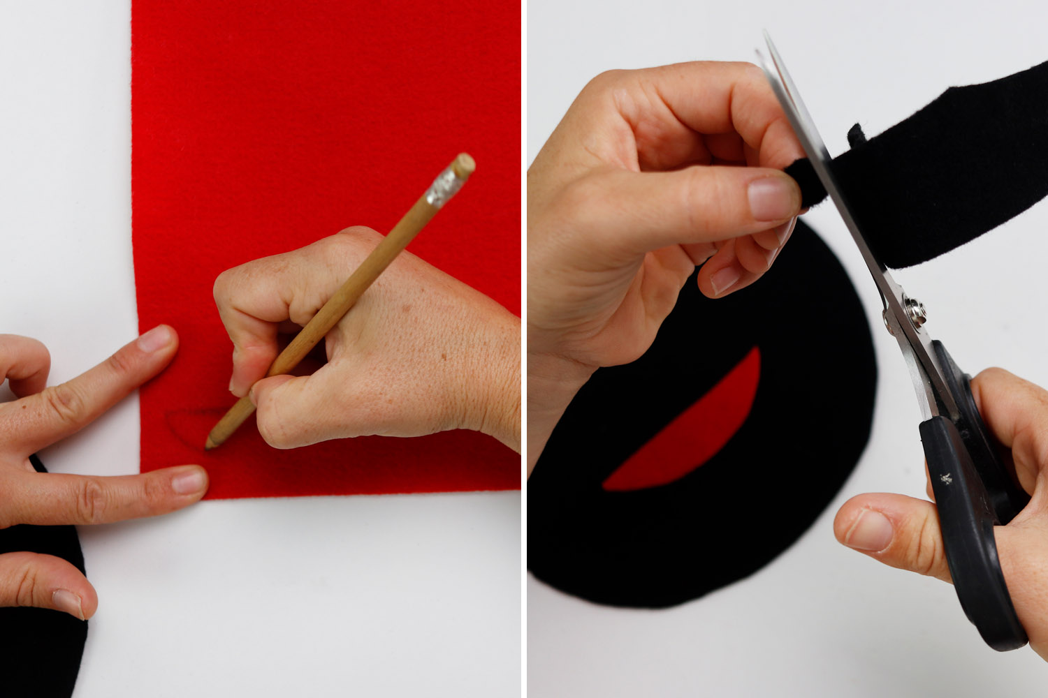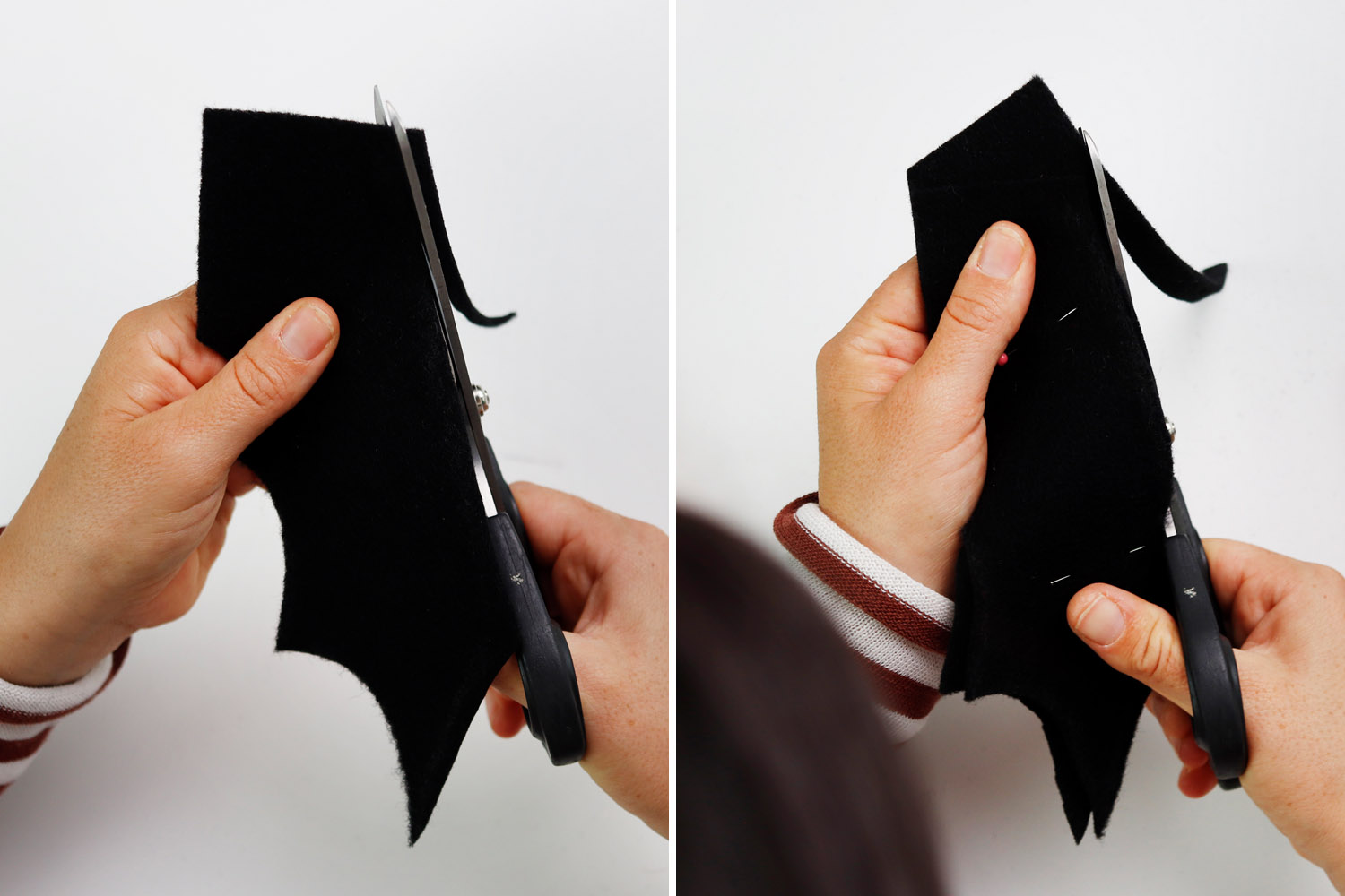 Place the cut shape on another piece of black felt and trace its outline. Cut the second shape along the line to have two identical parts to assemble.