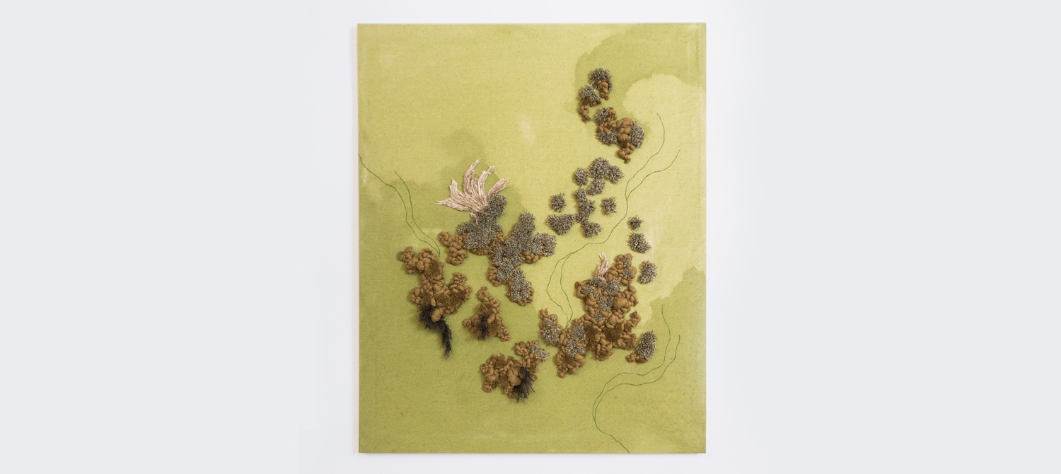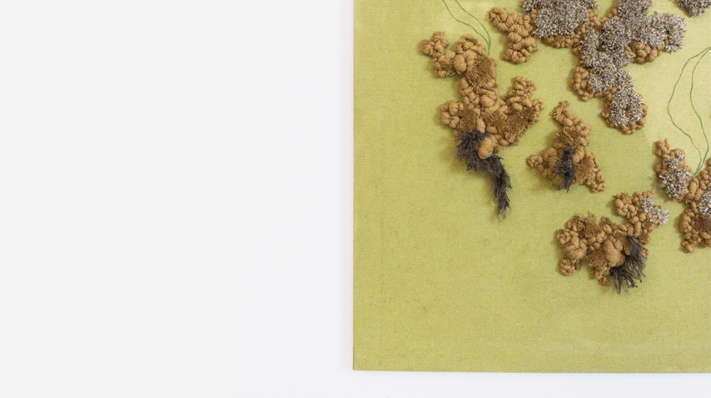 We asked Mariana to interpret some of our products, both fibers and yarns, and she created a beautiful textile piece in shades of green.