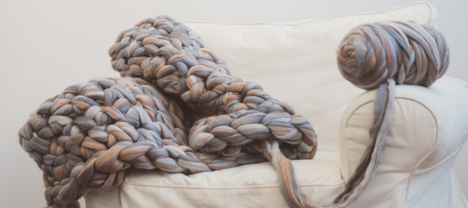 After falling in love with her chunky knit blanket we asked VeryCris to make us another piece using extra fine merino wool tops from the The Tempera Collection. Cristina didn’t let us down and gave us a wonderful futon.