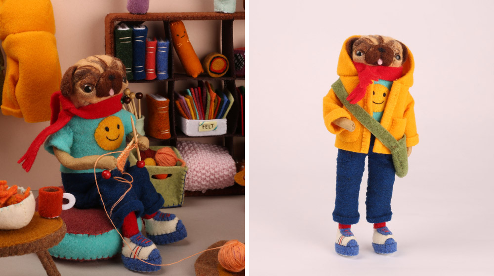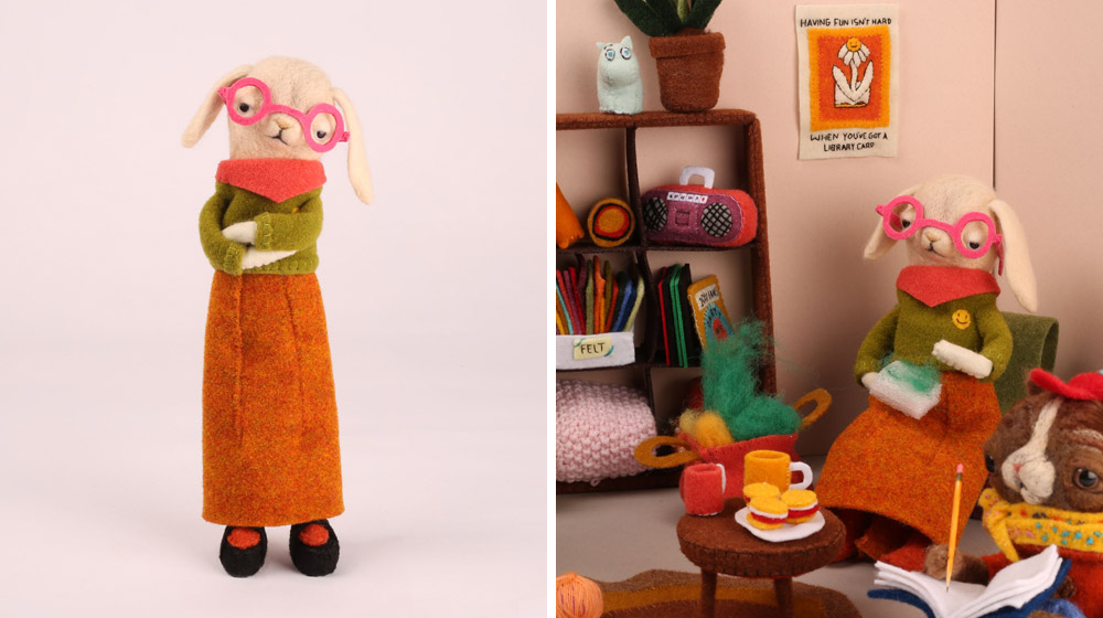 Cat, dopo aver scelto il materiale dalle nostre collezioni di feltro e lana merino extra fine, ha realizzato esclusivamente per noi tre soffici amici che dividono la passione del crafting: Binky il carlino, Buster il coniglio e Arthur il gatto. Questi buffi animali sono vestiti di tutto punto e si divertono insieme in una stanza colma di feltro e gomitoli, libri e dischi, biscotti e tè. Ogni particolare è curato nei minimi dettagli e il risultato finale è strepitoso! Noi siamo innamorati di Cat Rabbit, succederà lo stesso a te.