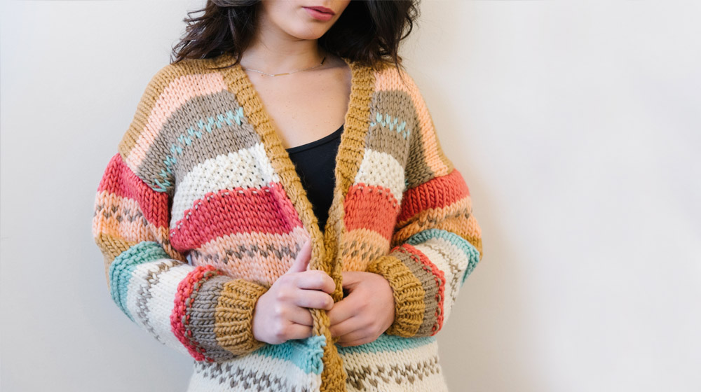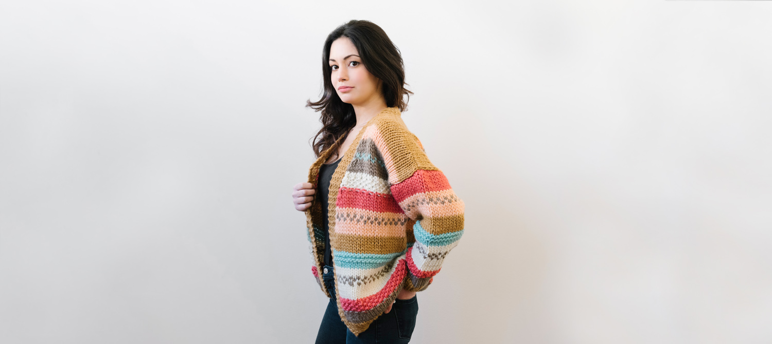 Oggi condividiamo con te il pattern gratuito per un cardigan che ha come particolarità quella di essere coloratissimo e decorato con motivetti che s'intrecciano. Il gusto è un po’ rétro. Il tocco in più? È realizzato con nostro iconico e caldissimo filato in pura lana merino Piuma.