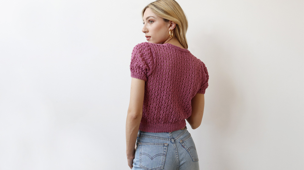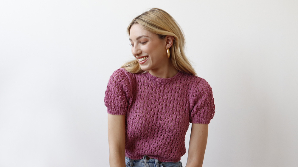 Oggi condividiamo con te il pattern per una maglia con le maniche a sbuffo. Traforata e realizzata con un filato in lino e cotone, il nostro Cleopatra. È una gioia per gli occhi e per la pelle perché è carinissima ma anche traspirante e quindi piacevole da indossare anche nelle giornate più calde.