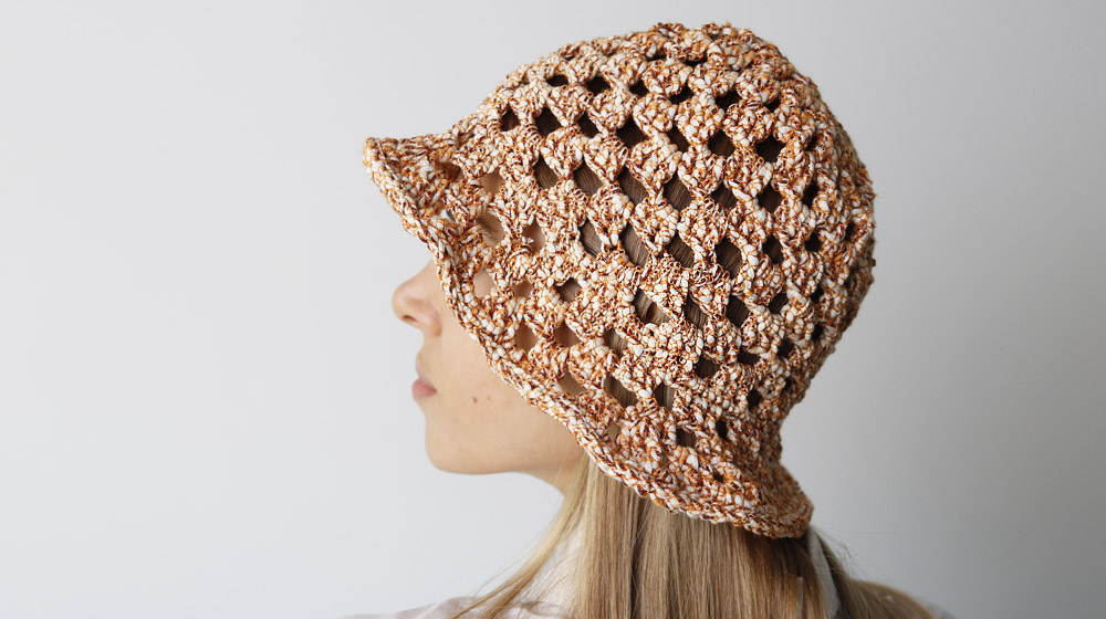 Il cappello è lavorato in tondo, dall’alto verso il basso, ed è senza cuciture. Sostituite la prima maglia di ogni giro con gruppi di maglie alte con 3 catenelle e di ogni giro a maglia bassa con 1 catenella. Chiudete i giri con 1 maglia bassissima, lavorata nella 3ª catenella d’inizio per i giri con gruppi di maglie alte e nella catenella d’inizio per i giri a maglia bassa.