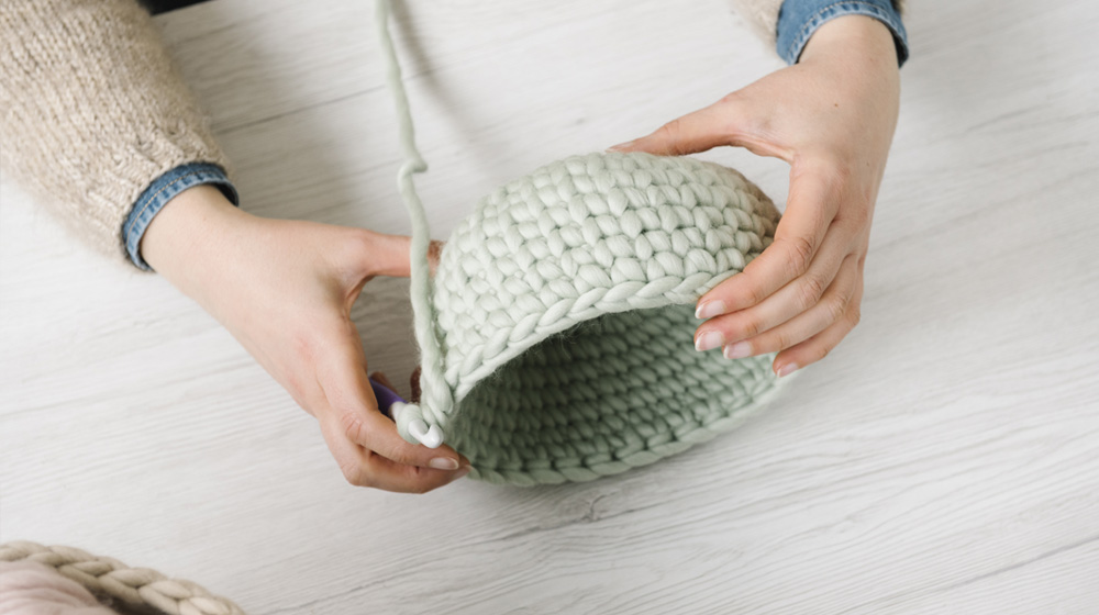 Per chi poi ama le fibre nobili e i materiali a prova di sostenibilità, sappiate che il filato Piuma è in pura lana merino e certificato Oeko-Tex. Caratteristiche non poco importanti per chi vuole oggetti di qualità e anche attenti all'ambiente che ci circonda. Sullo store tra l'altro trovi tantissimi colori, sia tinta unita che stampati, tra i quali scegliere. Così potrai abbinare il cesto (o i cesti) che realizzerai alla stanza che vuoi.