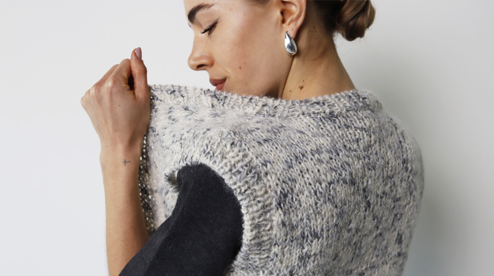 Il vero punto di forza di questo cardigan è evidentemente il filato scelto per realizzarlo, N.5: dedicato alla iconica Gabrielle Chanel è in alpaca e con una piccola dose di lamé. Se non usi questo filato il cardigan con tasche che imparerai a fare oggi non avrà lo stesso carattere.
