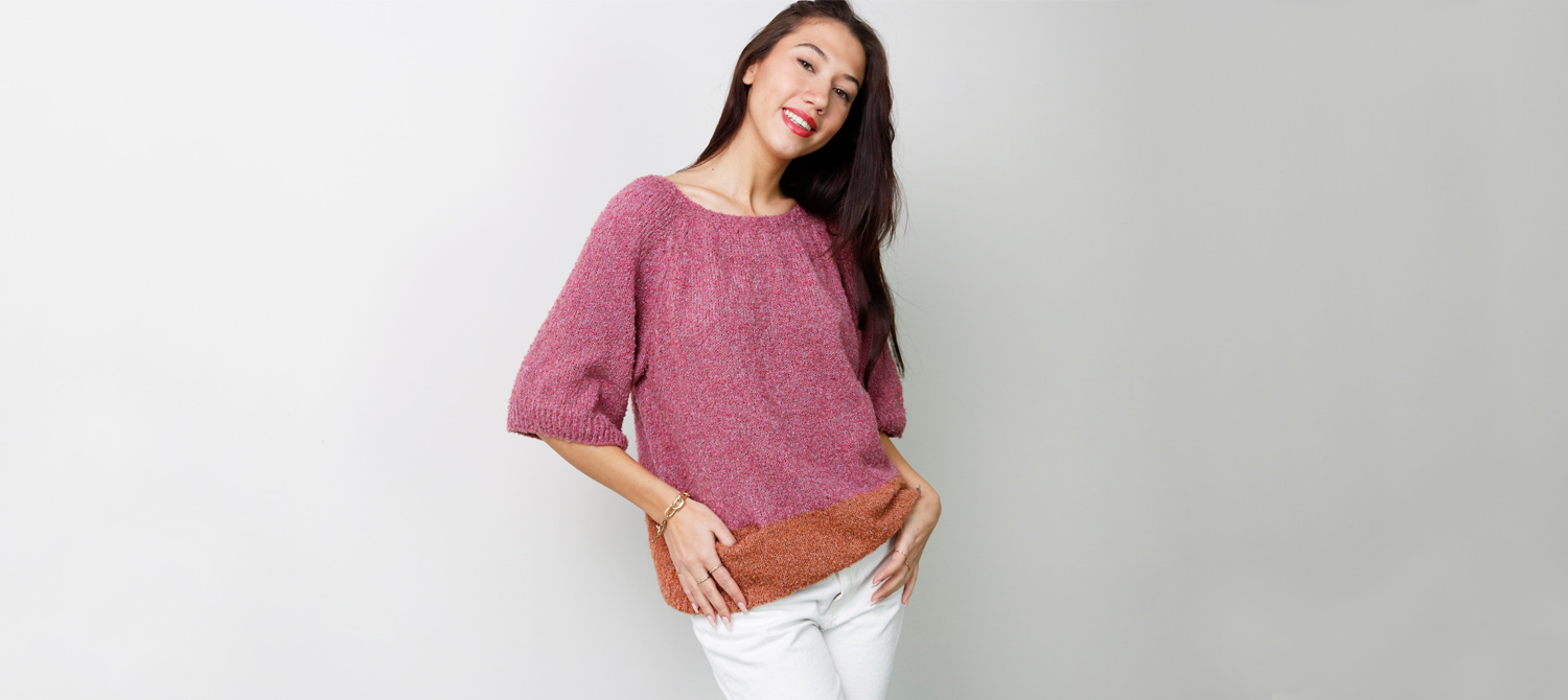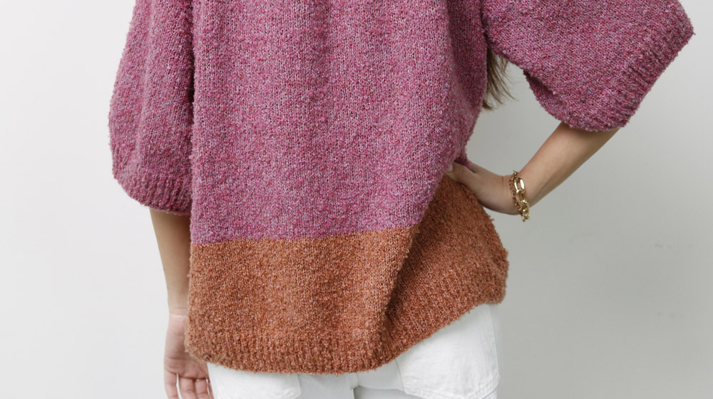 Un maglione bicolor con maniche a tre quarti, volumi over e un grazioso taschino per dare un tocco di sciccheria in più. Questo è il pattern gratuito che ti offriamo oggi! Ma quello che rende questo maglione davvero speciale è il filato scelto per realizzarlo, ovvero Hygge. Un concentrato di morbidezza e bellezza. Un filato che ha al suo interno il Tencel, la fibra più sostenibile al mondo, e lana di alpaca, preziosa e caldissima. In più Hygge è lavorato in modo da avere un leggero effetto bouclé che gli dona una matericità apprezzabilissima da chi ama l'effetto pelliccia ma ha a cuore la vita degli animali.
