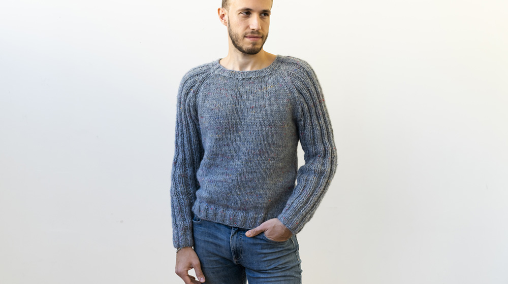 Questo maglione da uomo ci piace perché è leggermente attillato, con maniche a coste larghe che fanno anche da polsino e con uno scollo insolitamente generoso per un capo maschile. Queste caratteristiche lo rendono un classico ma con un tocco di contemporaneità. Ci piace vedere gli uomini che indossano capi fuori dalle solite rotte. Per aggiungere ancora un particolare atipico ma carinissimo abbiamo scelto il filato Cyrcus nel color orizzonte, che ha una base azzurra con delle leggere fiammature dai colori brillanti, tra i quali il giallo e il rosa. A noi sembra un contrasto strepitoso! Sullo store comunque trovi altre varianti del nostro Cyrcus in alpaca e merino.