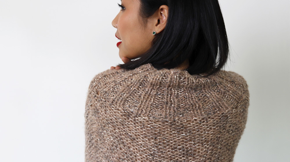 Con le ultime 2 righe avete completato la manica e continuato a lavorare la fascetta che completa una spalla. Proseguite a maglia rasata dritta su queste 4 maglie fino a raggiungere la lunghezza sufficiente a coprire la lunghezza della spalla. Chiudete il lavoro.