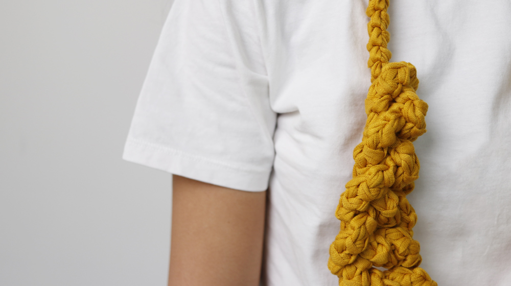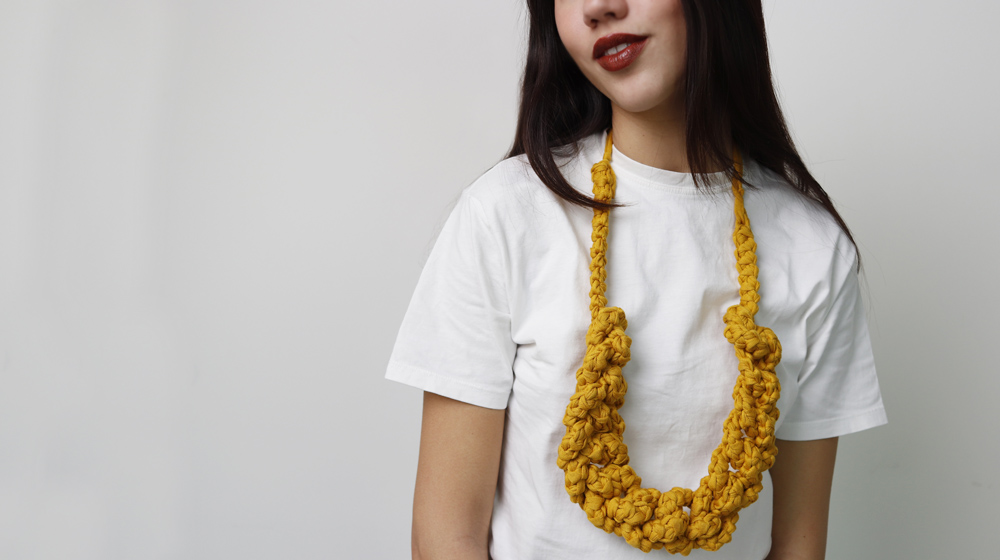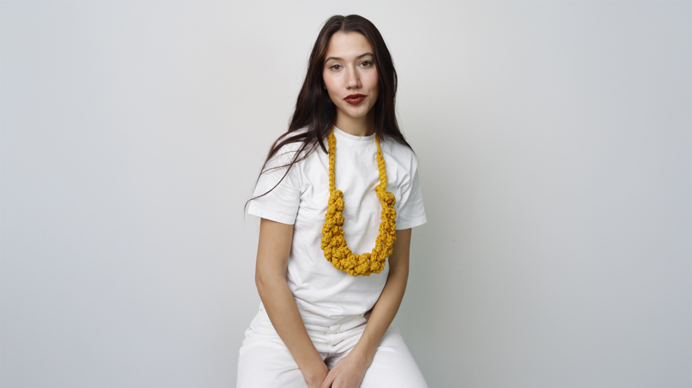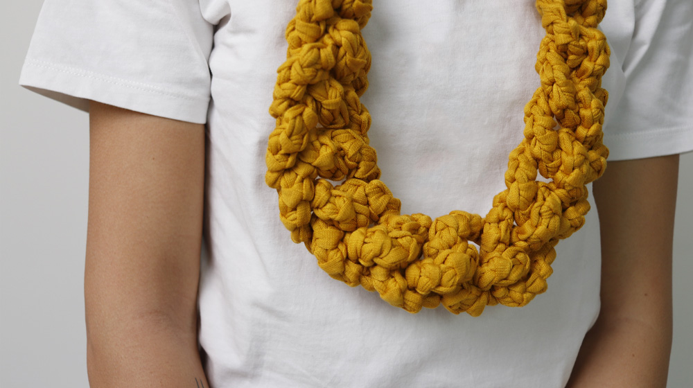 Progetto perfetto anche per principianti! Per questa collana con la fettuccia Stromboli prima si lavora una spighetta rumena di circa 270 cm e poi si continua il lavoro a uncinetto con le dita. Un carinissimo gioiello tessile da sfoggiare sia in estate che in inverno, da realizzare magari in diversi colori per abbinarlo all'outfit del momento. A noi ricorda tanto lo stile intramontabile e giocoso di Marta Marzotto.