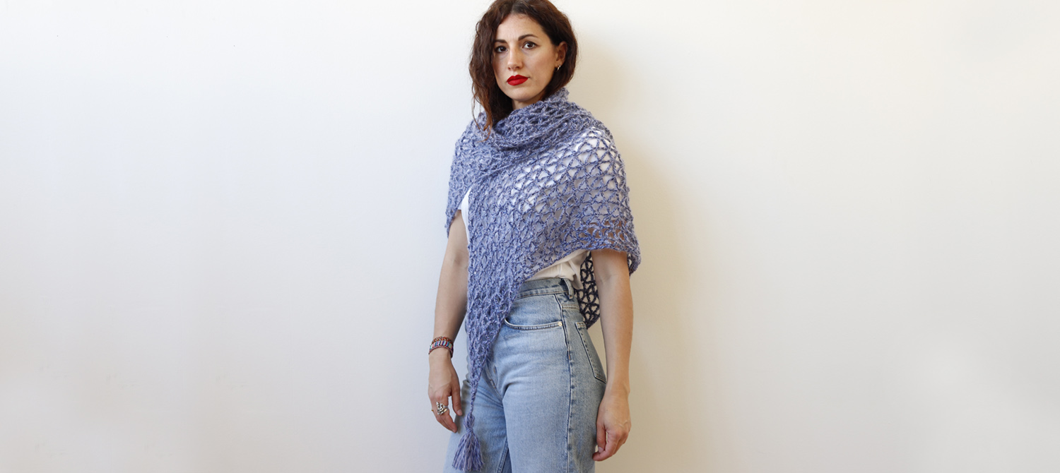 Puoi ottenere una kefiah da urlo come questa grazie ai filati scelti: Lagom, che ha un'alta percentuale di lana riciclata e un melange molto interessante, e Fluffy che è in seta e mohair quindi impalpabile e caldo. Sul nostro store puoi trovare altri mille abbinamenti di colore dei filati in questione, divertiti a trovare il tuo preferito!