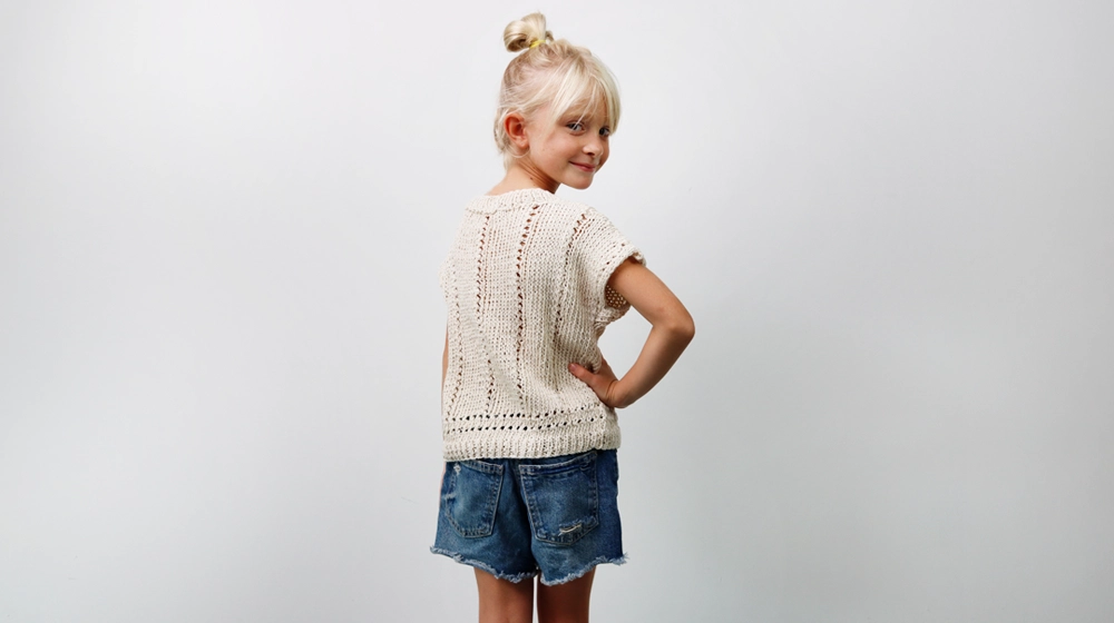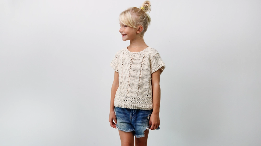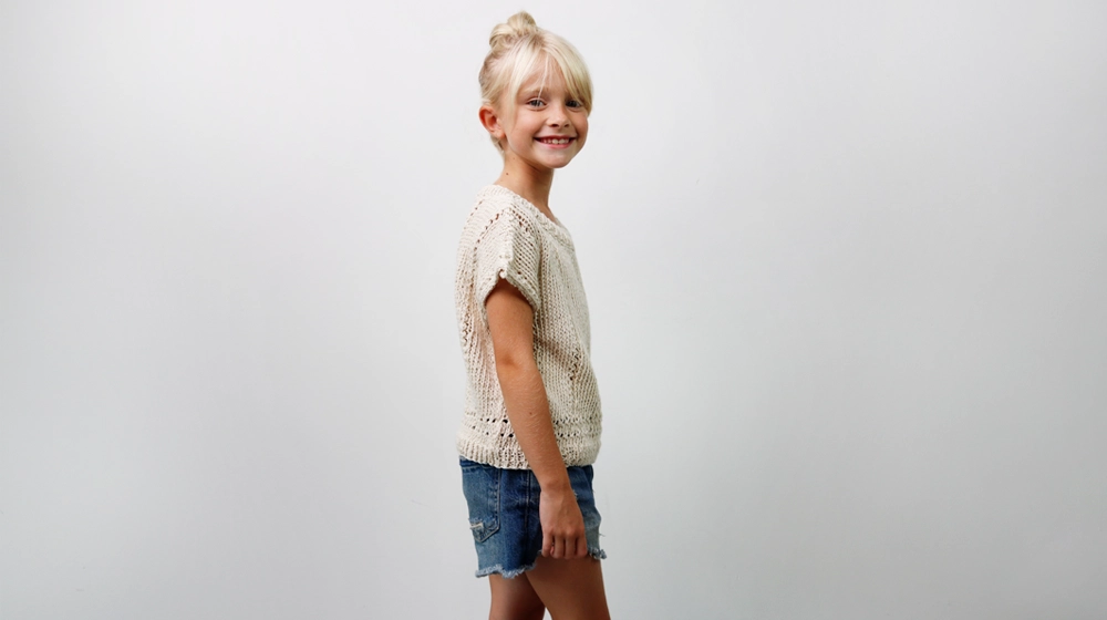 Il pattern di oggi è un'occasione per creare qualcosa di davvero speciale per una bambina. Una maglia traforata a maniche corte, con un motivo classico e che durerà nel tempo perché il filato con cui è stata realizzata è top di gamma. È di origine vegetale, si chiama Ortica e ha una grandissima percentuale di fibra di ortica, appunto, e il resto è di cotone. Se la maglia verrà trattata e lavata con la cura necessaria potrà essere passata di bambina in bambina diventando anche un esempio perfetto di economia circolare. Scegliere un filato di qualità significa anche investire sul futuro.
