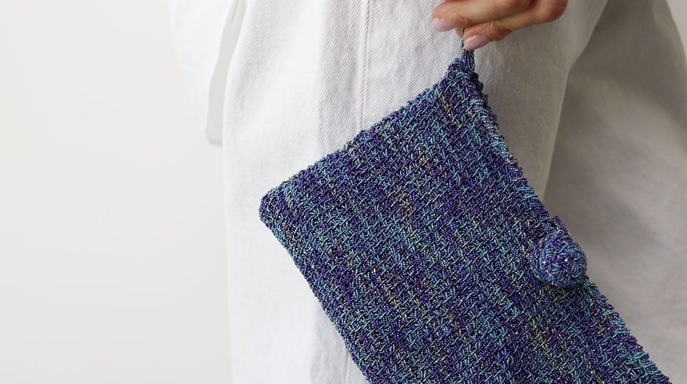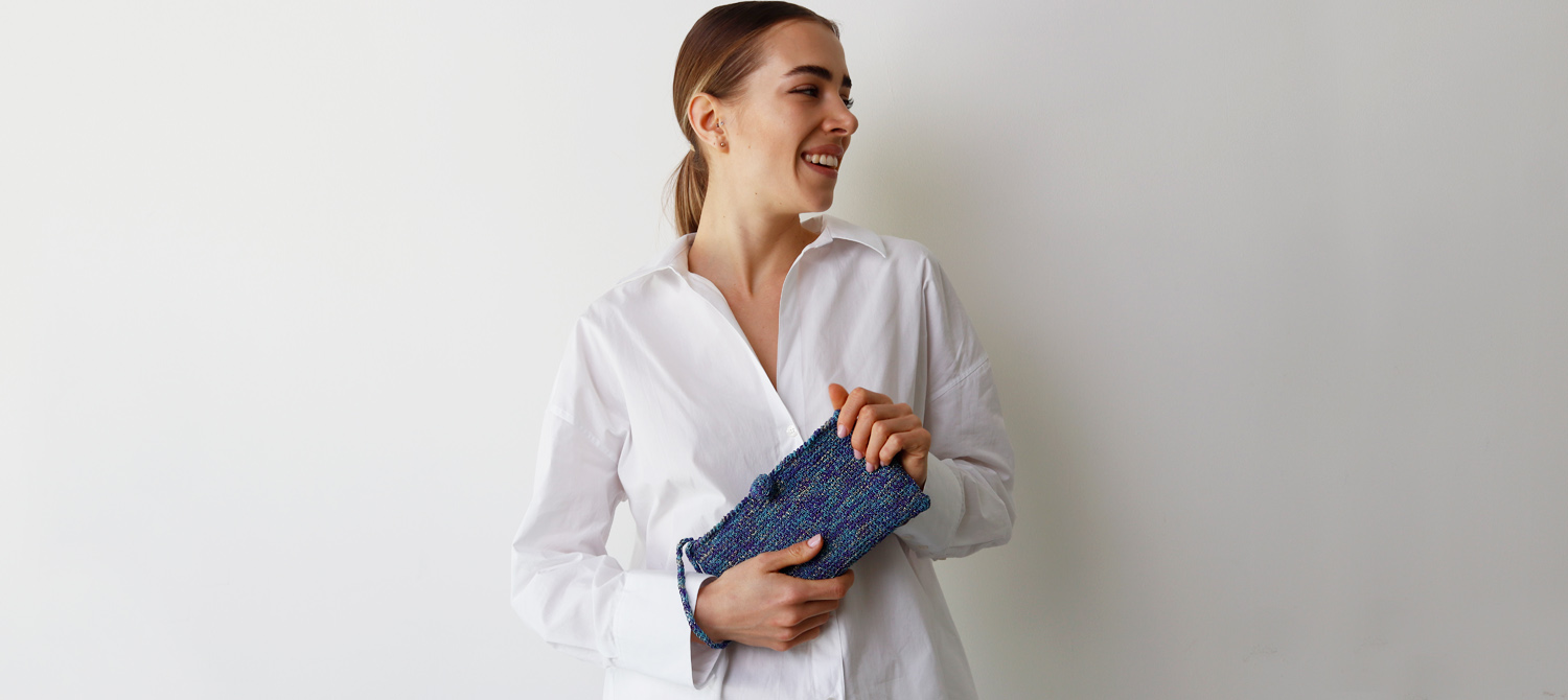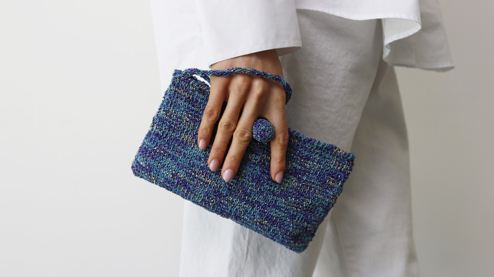 Impariamo insieme a realizzare una pochette scintillante con l'uncinetto tunisino. Una pochette con cinturino da polso e chiusura interamente in filato. Nessuna cerniera, nessun bottone di plastica. Questo perché il filato scelto per questo progetto è Charleston, in cotone e lamé è perfetto per creare gioielli e accessori tessili glamour, data la sua rigidità.
