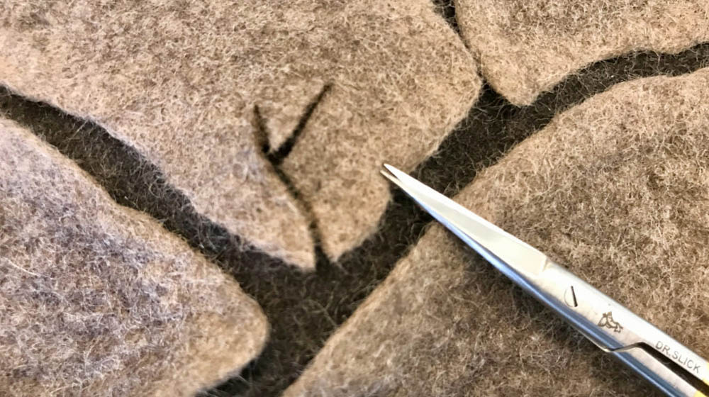 A questo punto dovrete infeltrire il vostro progetto. Dopo aver svolto un buon processo di infeltrimento, passiamo al passaggio successivo, ovvero tagliare con delle forbici lo strato superiore del feltro.