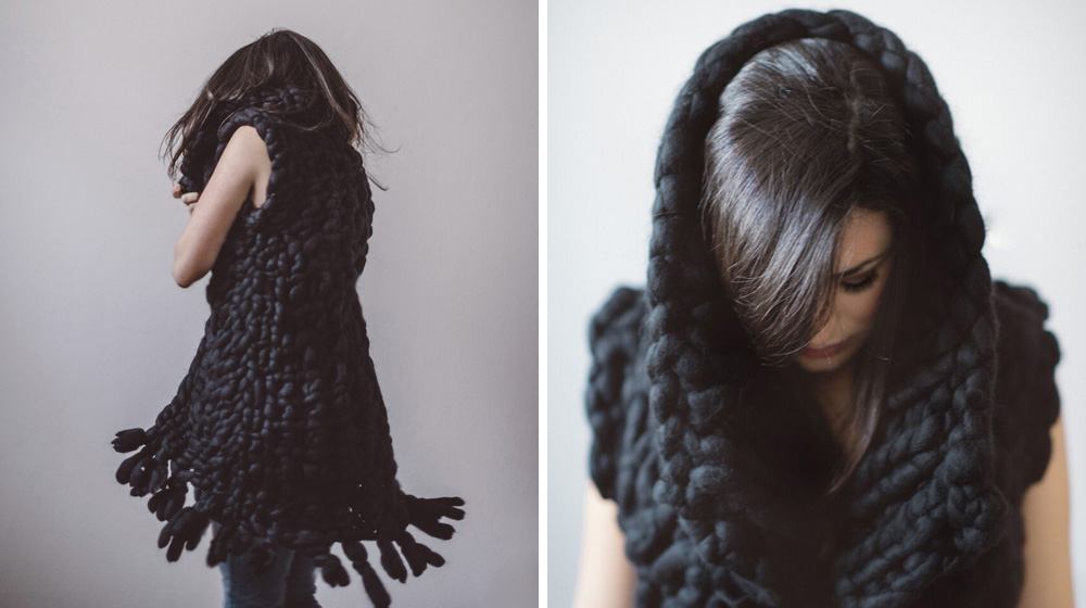 In effetti con un filato anche molto semplice (ma di dimensioni XXL), un paio di ferri e un po' di creatività si riescono ad ottenere risultati sorprendenti e i pezzi risultano essere molto scenografici pur nella loro semplicità.