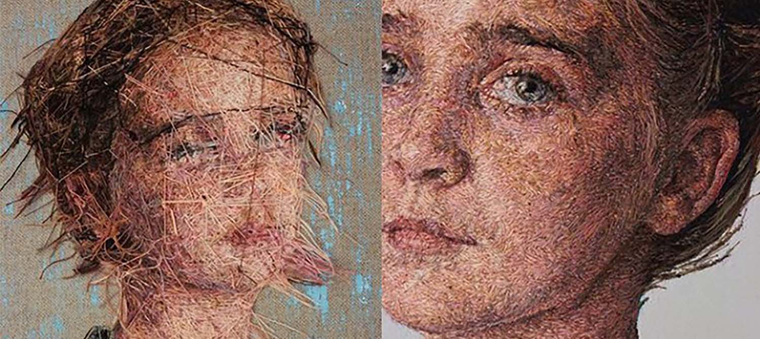 Oggi il ricamo si è evoluto in maniera pazzesca. Non si ricama solo la biancheria per la casa o le camicette ma si creano opere d'arte. Cercando su riviste e blog ho trovato una miriade di artisti che hanno fatto di quest’arte la loro passione/missione diventando dei maestri in materia. I lavori di Cayce Zavaglia, un’artista nata a Valparaiso in Indiana che dipinge e ricama, mi hanno particolarmente colpito. I suoi sono dei ritratti fatti di fili, chiamati appunto dipinti di filo e se osservati da una media distanza sembrano dei quadri. Cayce, grazie ad una scelta di colori accurata, proprio come si fa con le tempere, riesce ad ottenere sfumature incredibili che contribuiscono alla realizzazione di opere straordinarie. Inoltre, la direzione che dà al filo richiama le pennellate di un pittore. Il risultato è incredibile! Cayce pone estrema attenzione anche al retro dell'opera che ricama, come si può vedere nella prima immagine dell'articolo, realizzando una versione B del ritratto, una versione più astratta ma ugualmente affascinante e intensa. C’è un realismo in questi ricami che supera certe opere pittoriche e anche certe fotografie. Guardare per credere.